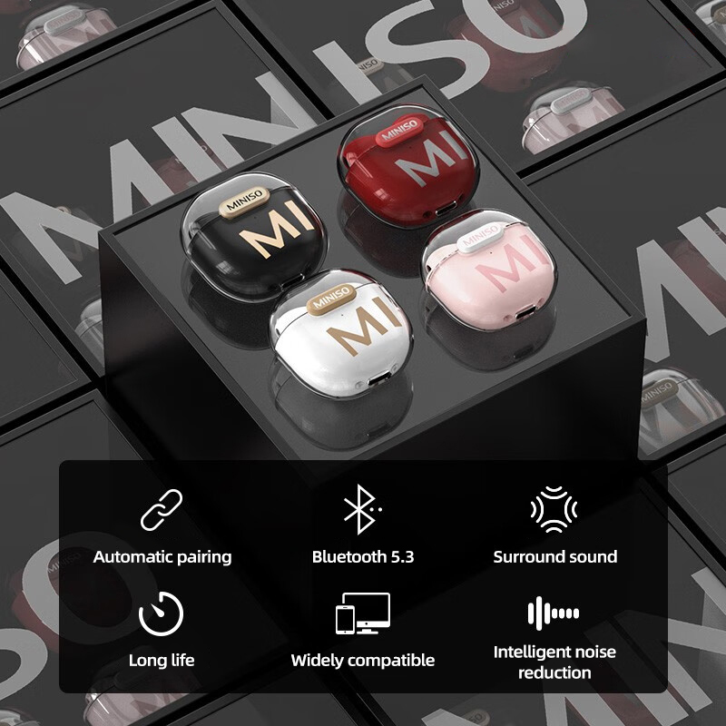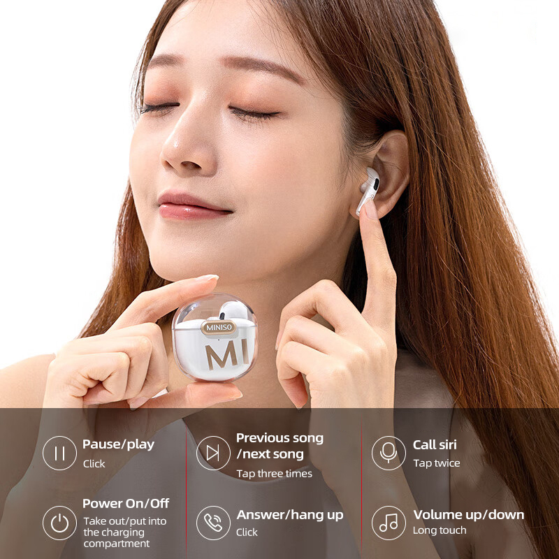 MINISO M01 Bluetooth Earphone 9D HIFI Sound Sport Waterproof TWS Wireless Headphones Bluetooth 5.3 With Charging Box Mic Support Call Video IOS Android Universal