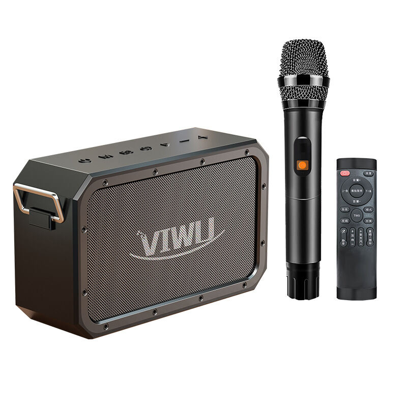 Net weight 2543G, Volume: 25.8*15.3*8.5cm,IXP6 level waterproof, support dual wireless microphone plus remote control function, easy to be portable with shoulder strap, people with speaker say go! In the portable karaoke speaker, the volume, weight and sound volume of V8 Max are just right, and it is easy to use at home and outdoors. It is very beautiful.