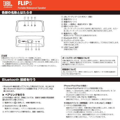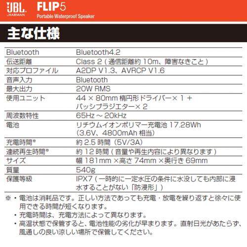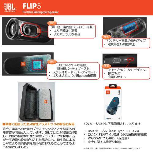 JBL FLIP5 Bluetooth speaker IPX7 waterproof/USB Type-C charging/passive radiator mounted/portable blue JBL FLIP5BLU [/manufacturer 1 year old]