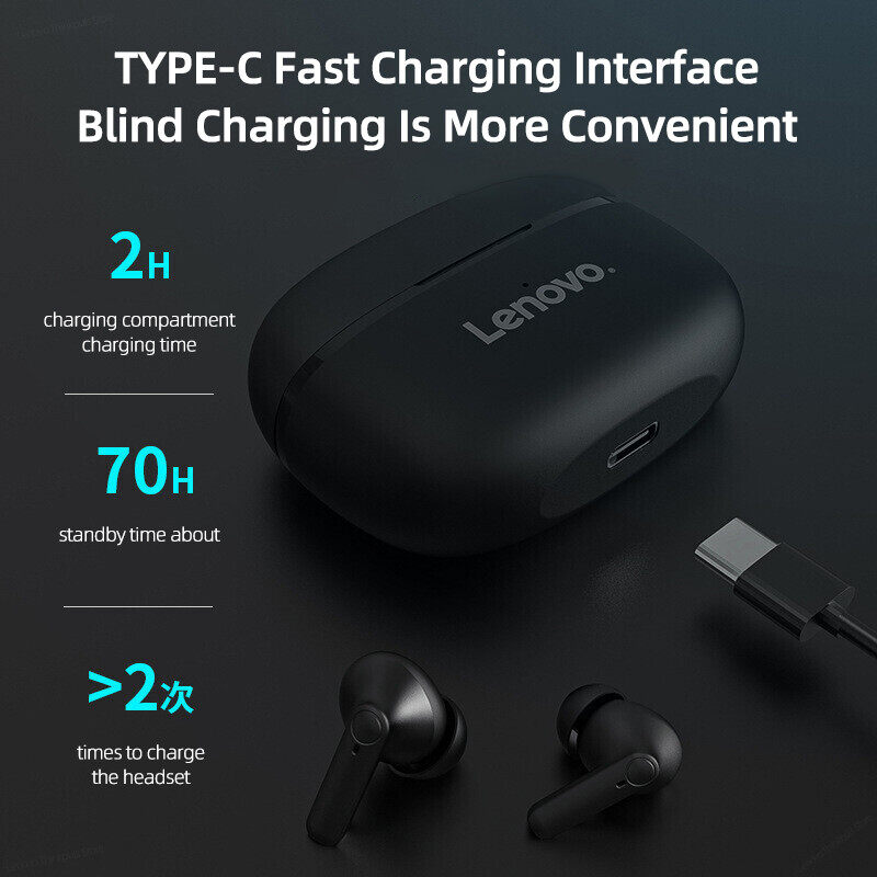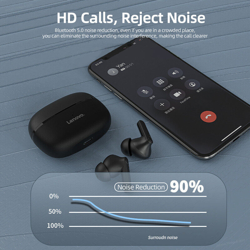 Lenovo New HT05 Bluetooth Earphone TWS BT5.0 Wireless Earbuds HiFi Noise Reduction Sport Headset with Microphone for Sports Use