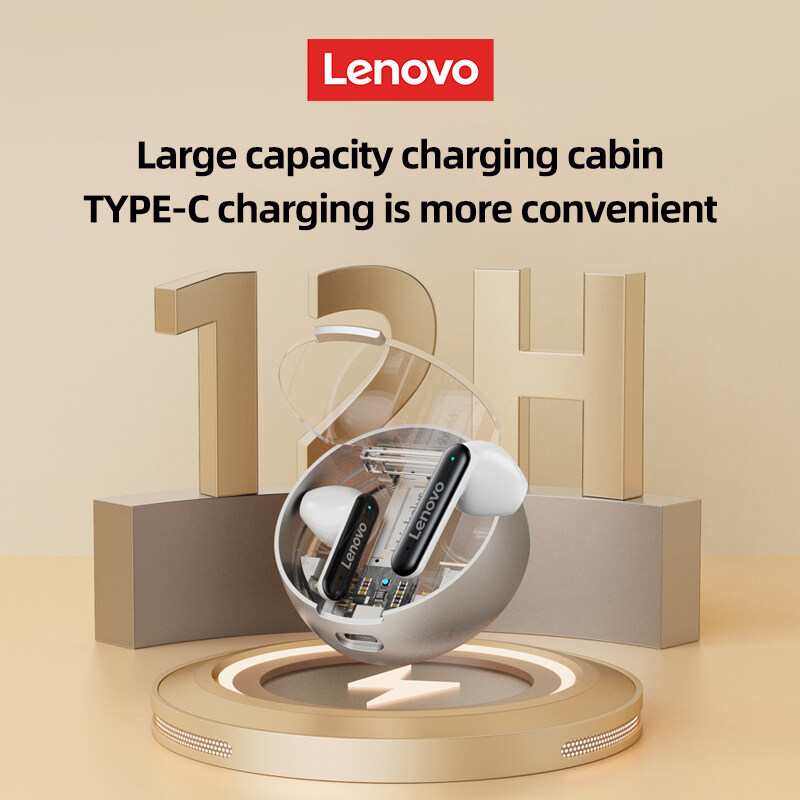 Lenovo LP8Pro TWS Bluetooth Earphone BT Transparent shell design Brand Quality Mini Wireless Earbuds Sport Gaming Bluetooth Headset with Mic Support Call Video Android Universal Mobile Phone