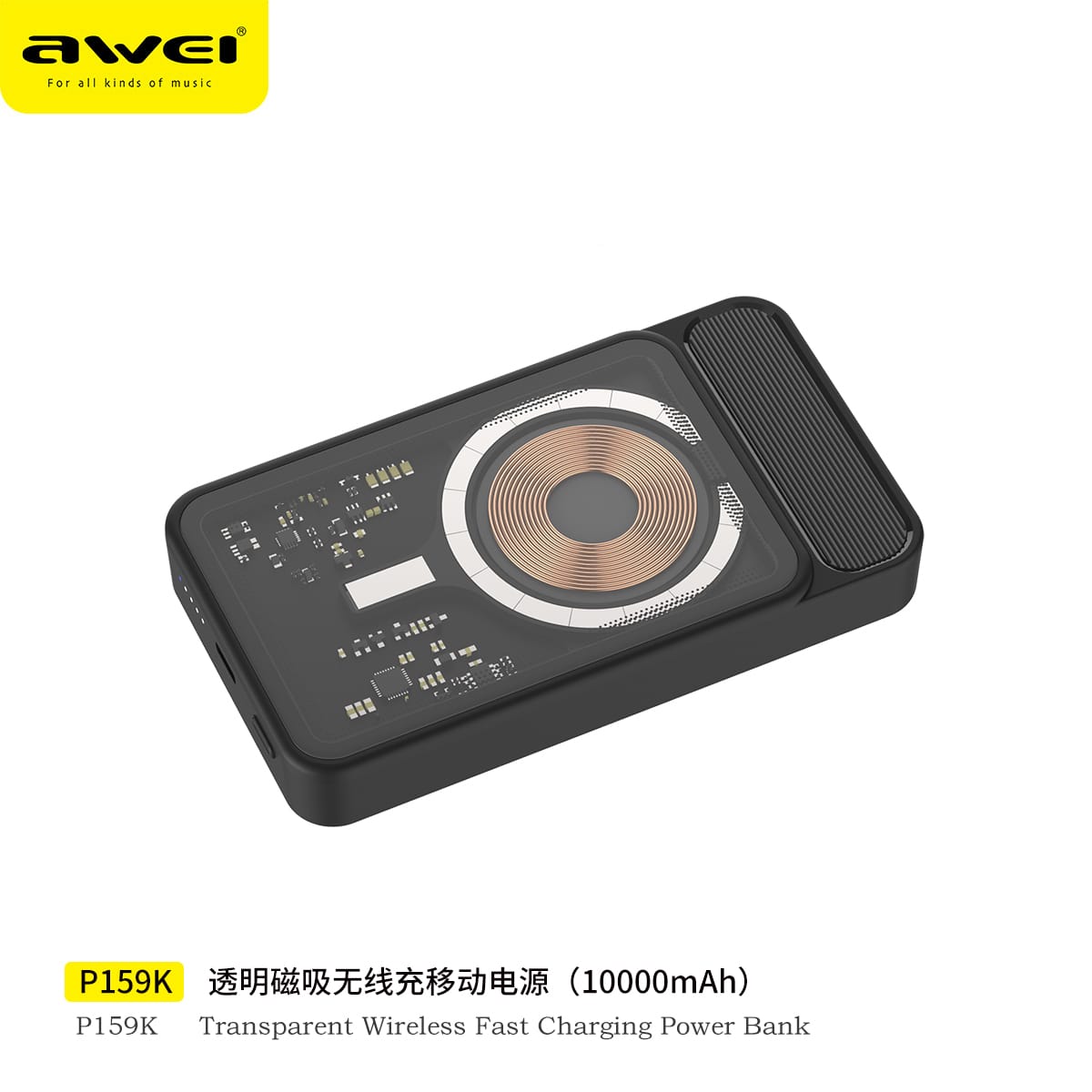 Awei P159K 15W Light Magnetic Wireless Power Bank 20W PD 10000mAh Type-C Fast Charge Portable Power Bank for Xiaomi Samsung