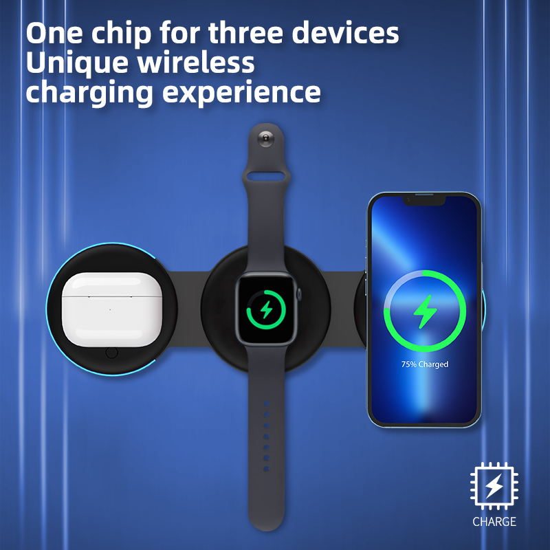 • 【Innovative Fast Charging Technology】3 in 1 Wireless Charger will distribute power at lightning speeds!Fast Wireless Charging have made a breakthrough in the use of upgraded coils,Compatible with all Qi-supporting devices.Travel wireless charger can magnetically stick to iPhones with capabilities.