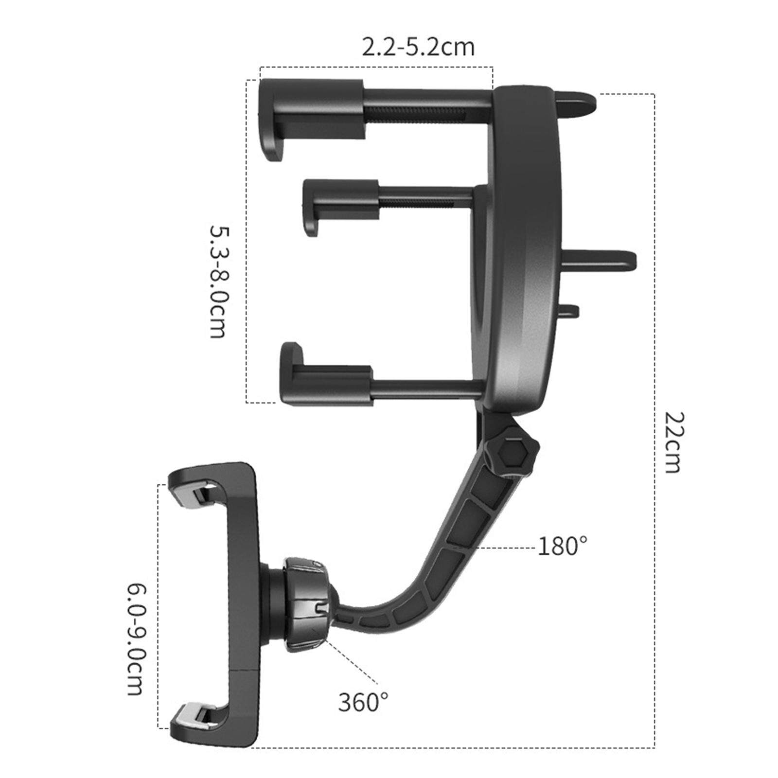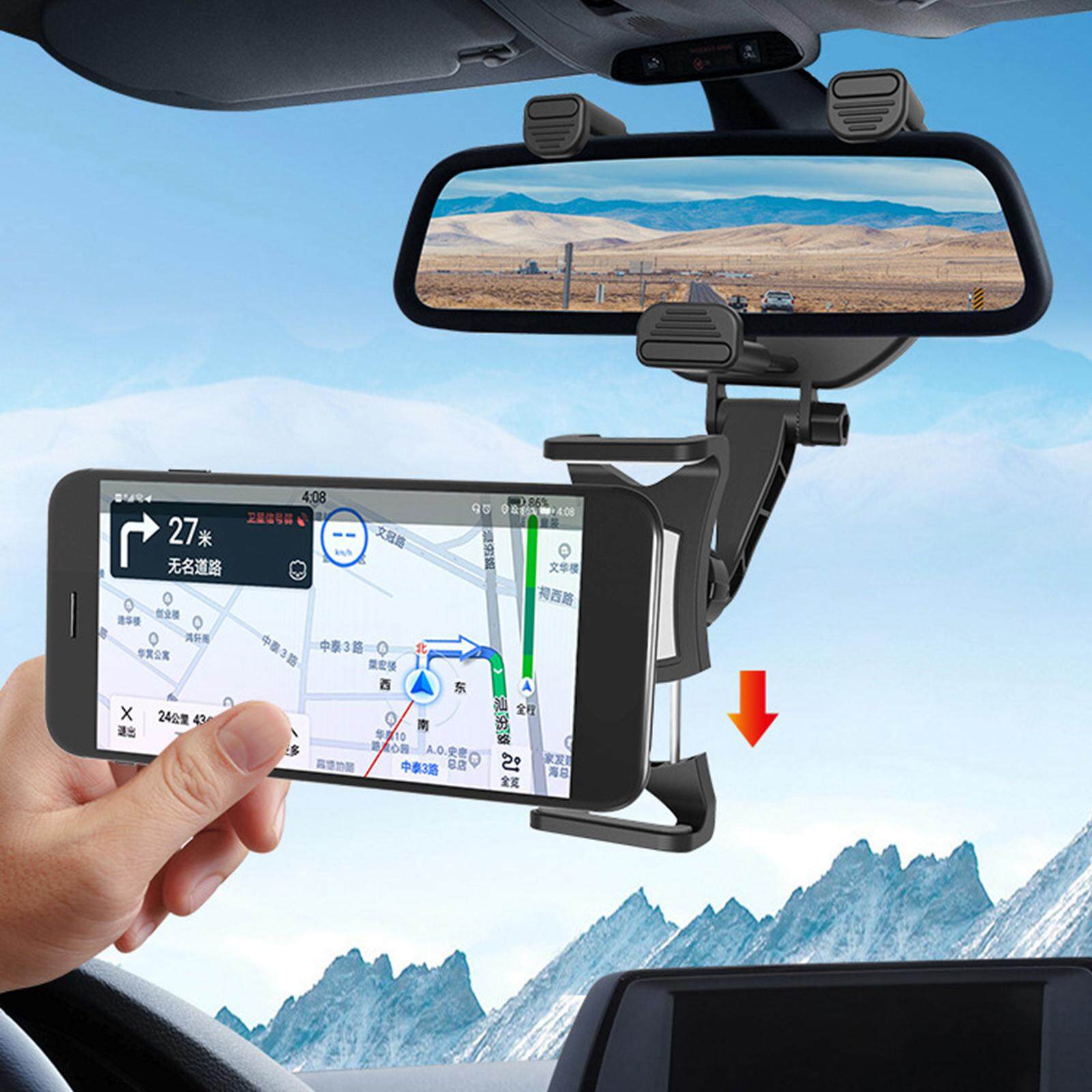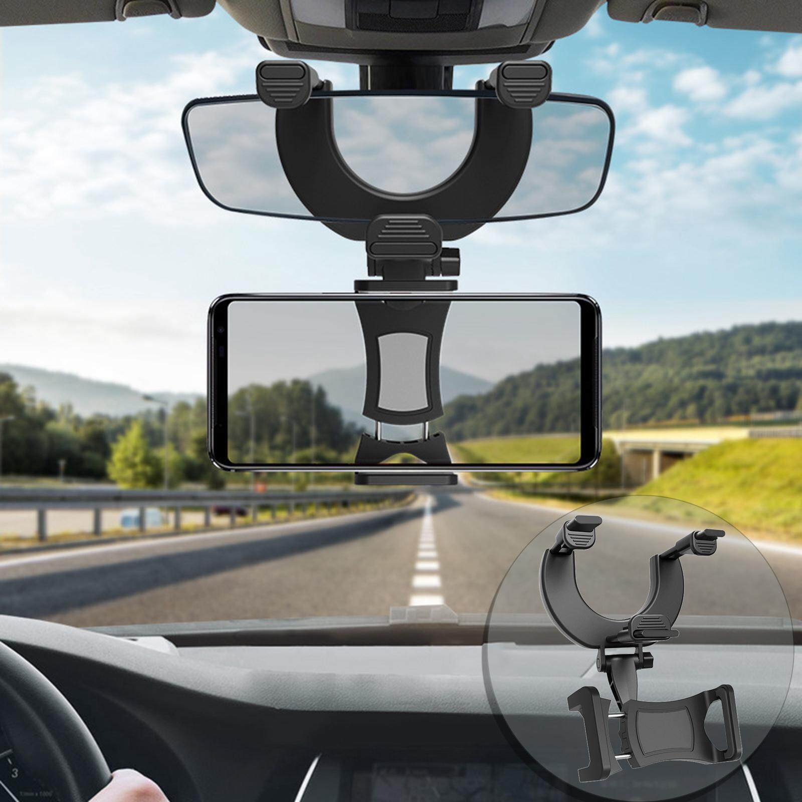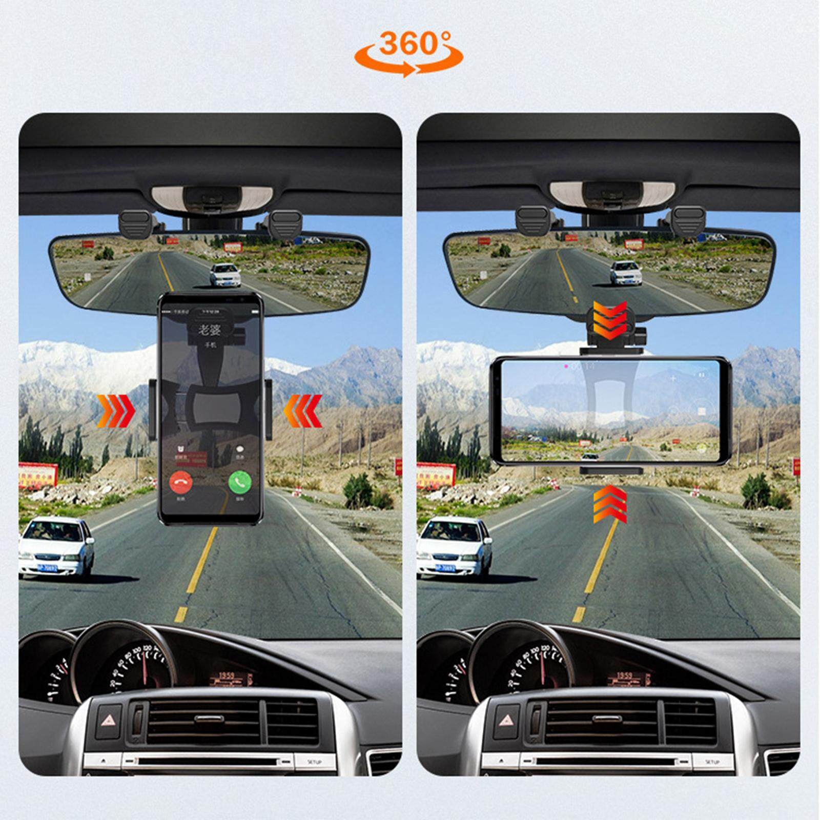 - Function: This Phone holder fixed on the car rearview mirror, can be rotated 360 degrees, simple and practical. You can place or take the phone with one hand when driving, easy to adjust the cellphone to horizontal or vertical screen.