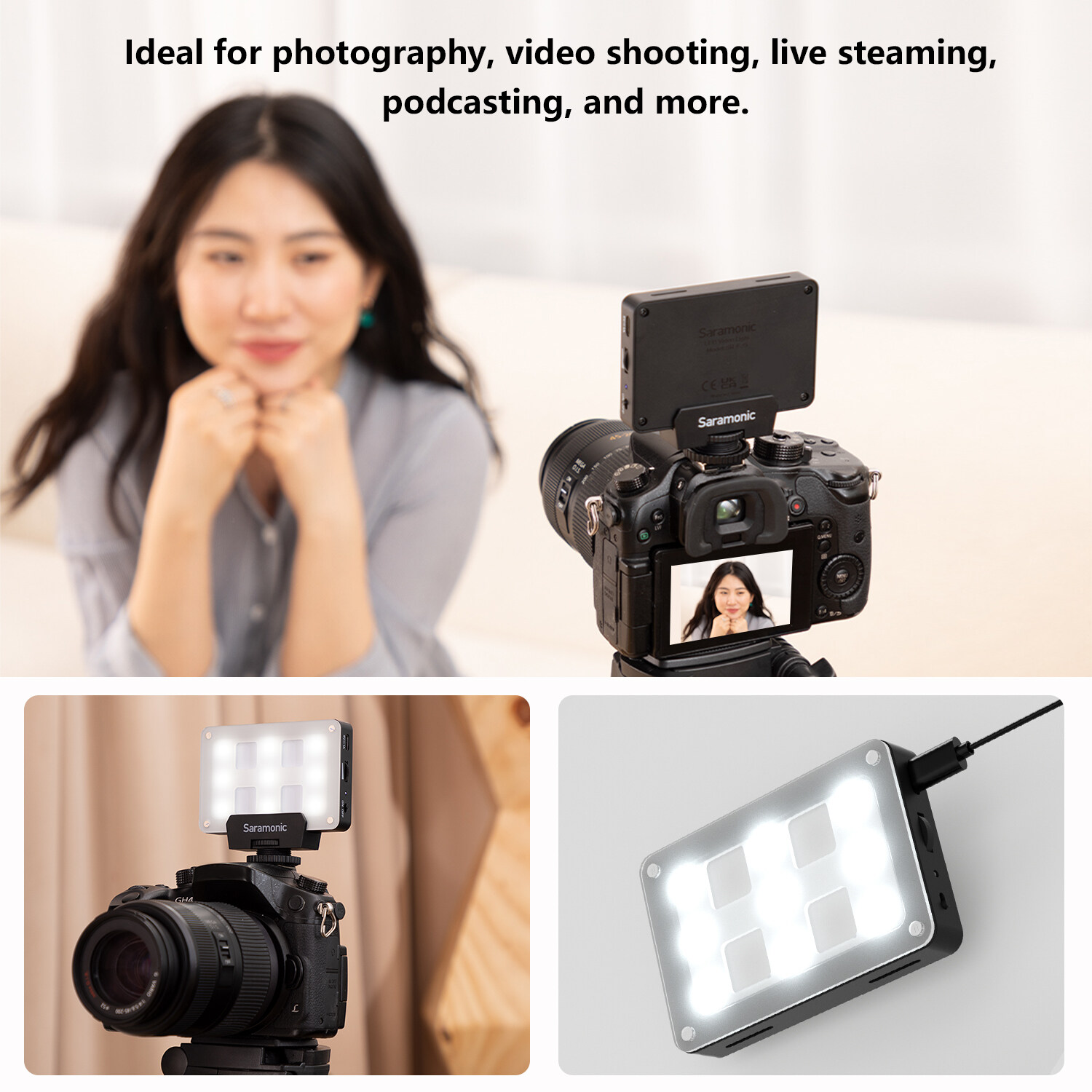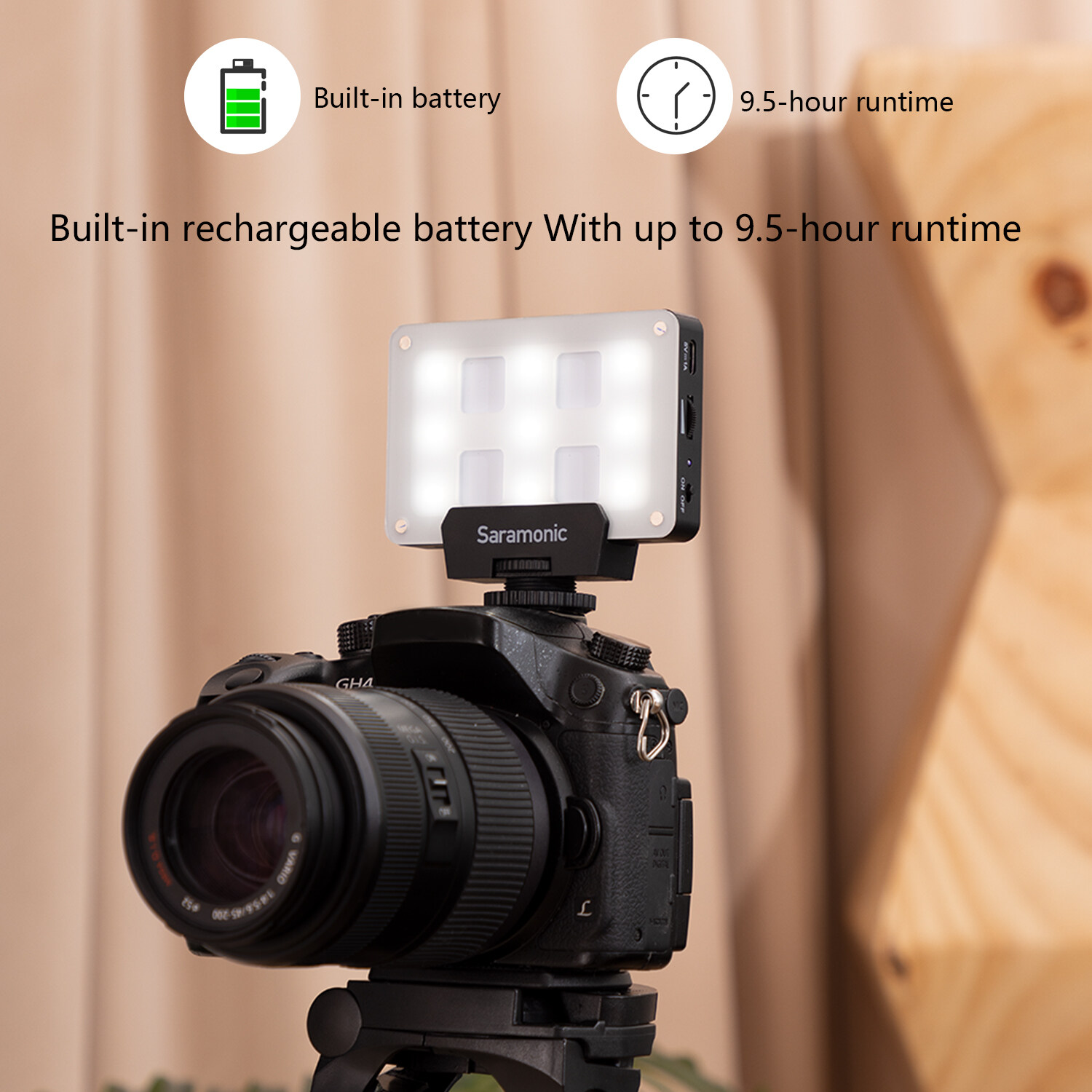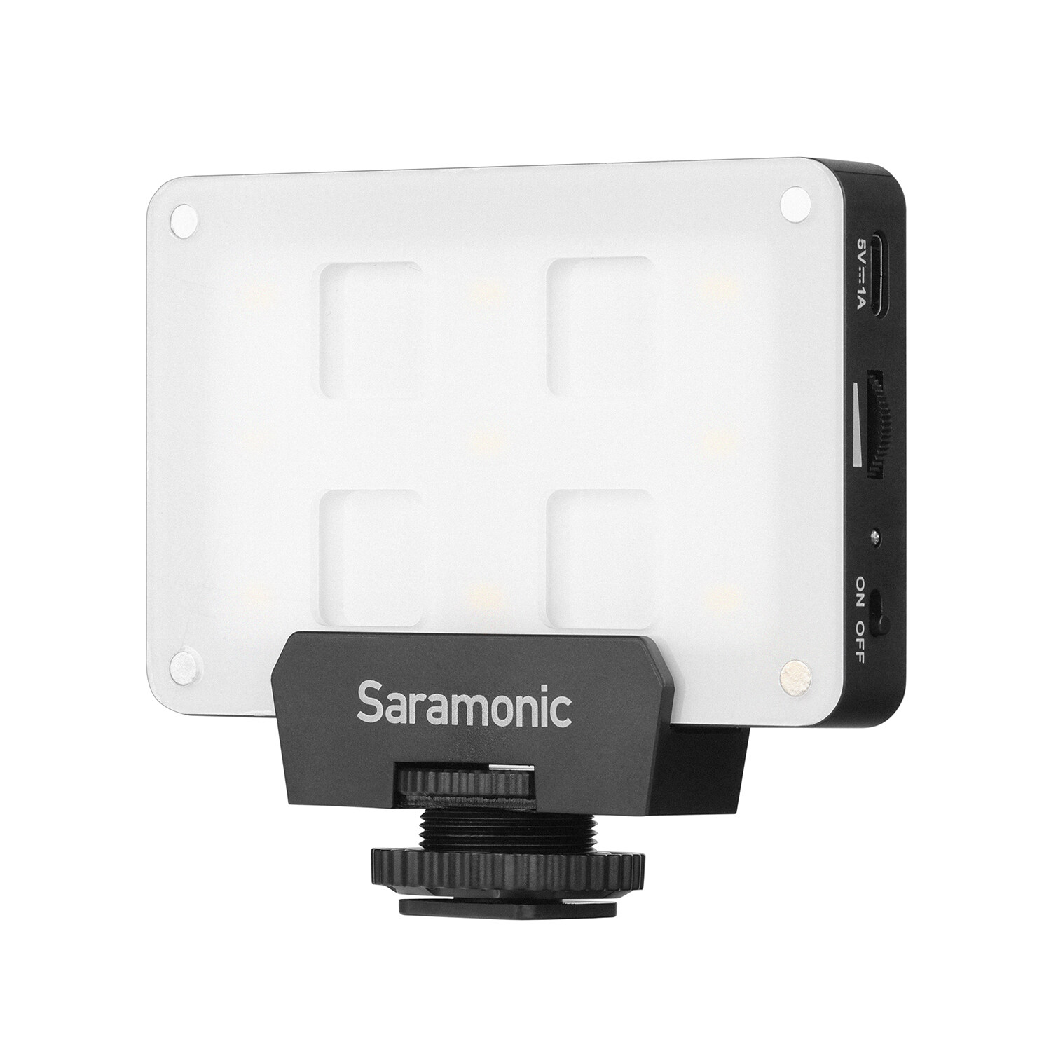 Saramonic SR-F35 is an ultracompact and lightweight pocket LED light. It features 9 LEDs and 5500+K color temperature. With a brightness control wheel, you can easily adjust brightness to suit different shooting conditions. Built-in rechargeable lithium battery provides up to 9.5-hour runtime at minimum brightness and can be charged via the USB-C charging port.