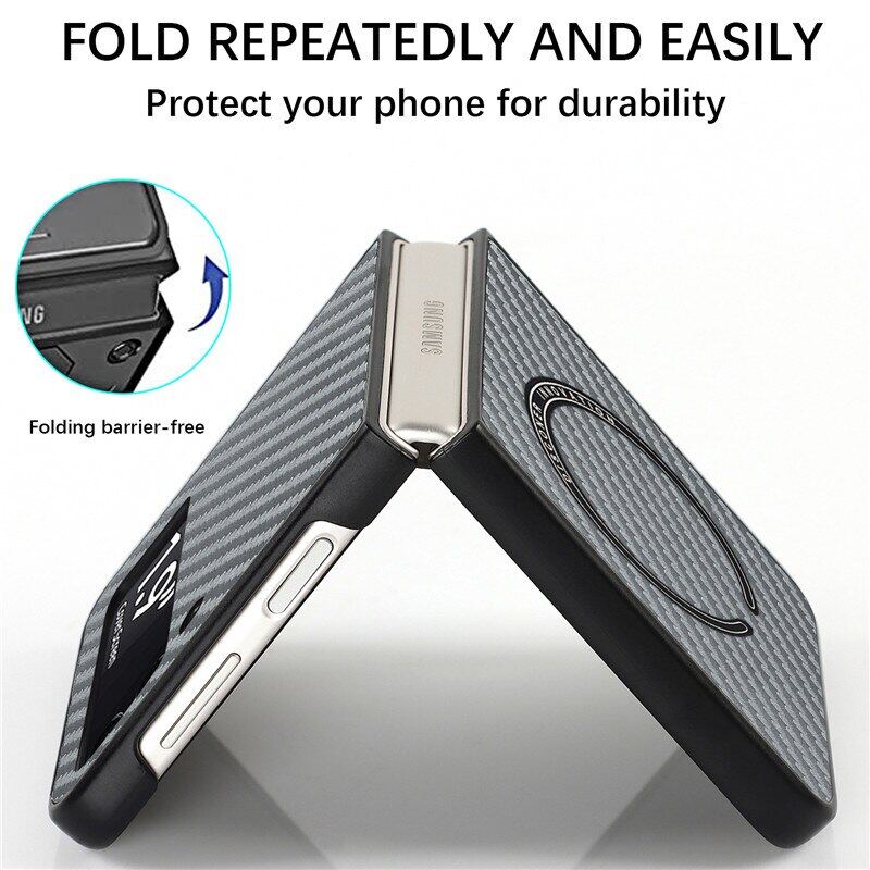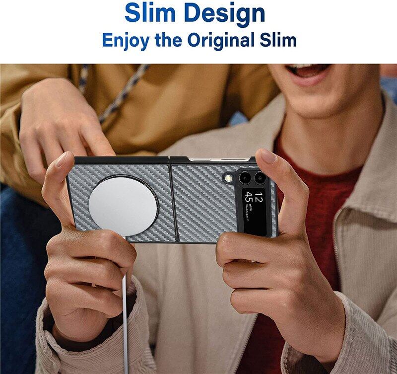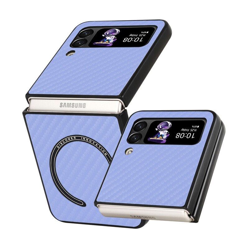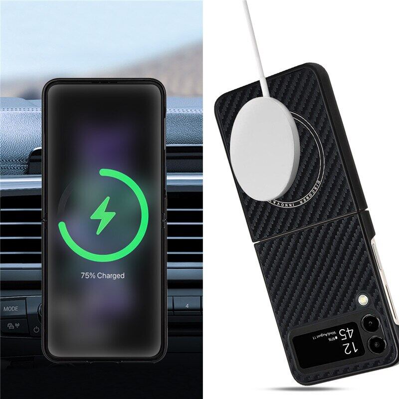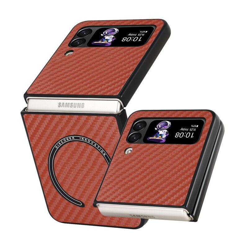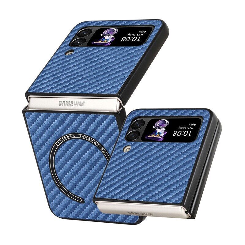 HOCE Magnetic Carbon Fiber Patterned Cases For Samsung Galaxy Z Flip 4 Z Flip 3 5G Z Flip3 Flip4 ZFlip4 ZFlip3 Case Magsafe Ultra Slim Phone Cover