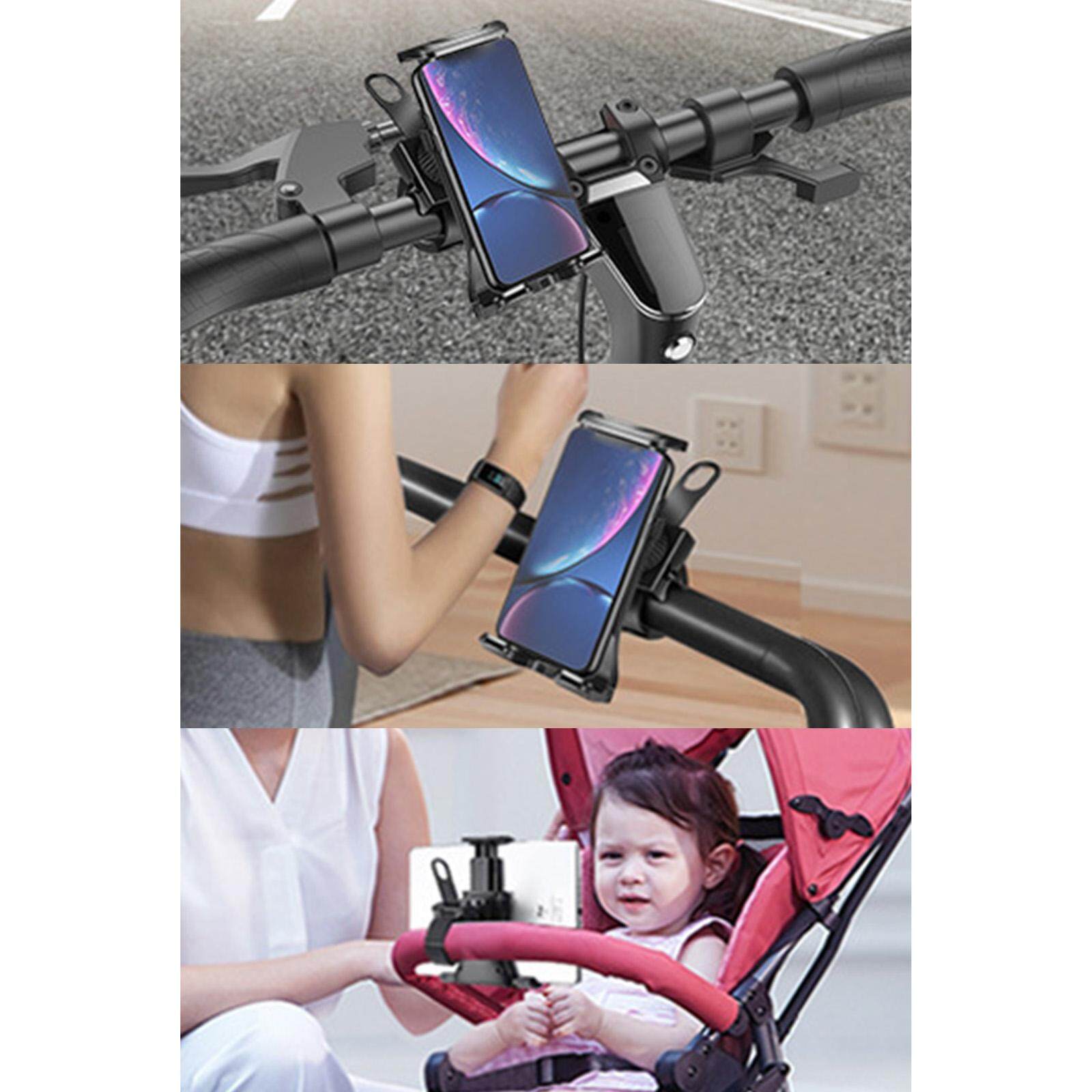 PERFECT DESIGN: The fitness bike handlebar phone holder has a 360 -degree rotation function, which can rotate the phone from vertical to horizontal mode.FEATURE: Can watch tv programs while riding a bike, treadmill or Gym training equipment.USAGE: You need to put the mobile phone or tablet into the bracket first, then connect the bracket buckle.APPLICABLE: Universal for phone, etc.Specification: