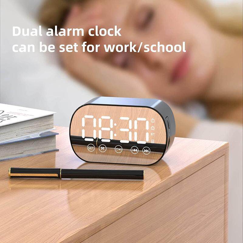 【Bluetooth 5.0】You can connect to your smart phone or tablet immediately from the farthest about 10m/32.80 feet. The Bluetooth 5.0 speaker alarm clock Bluetooth link and TF-card playback function provide you with more music choices.