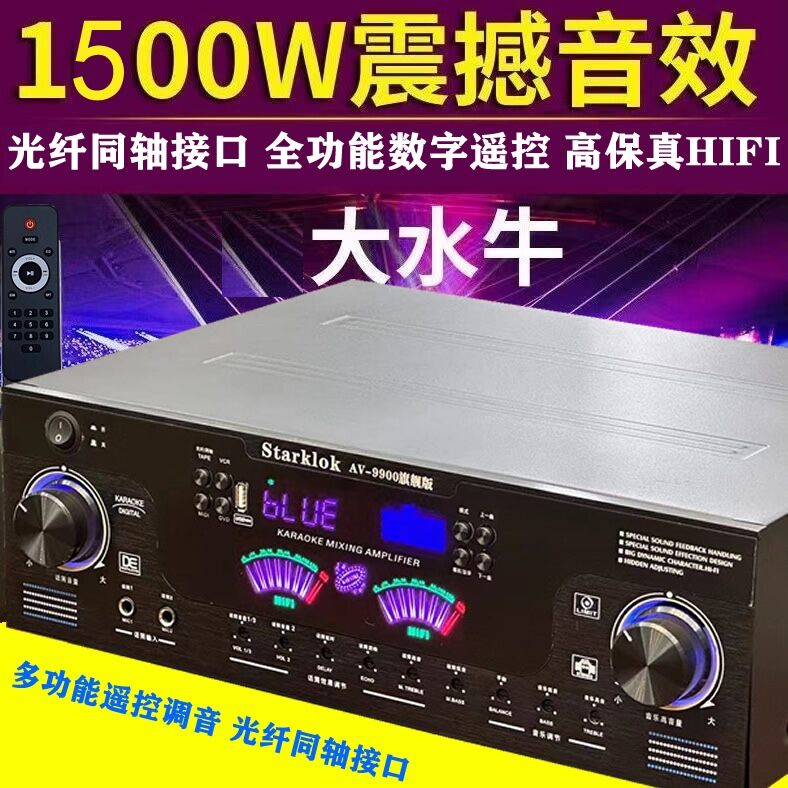7 Channel Power Amplifier Home KTV High Power Professional Stage Audio Bluetooth Karaoke Computer SD Reverb Amplifier