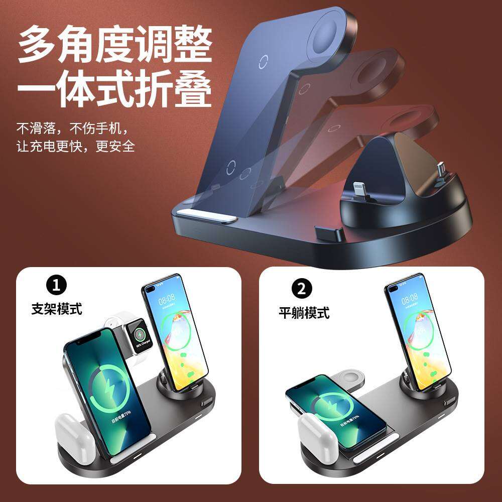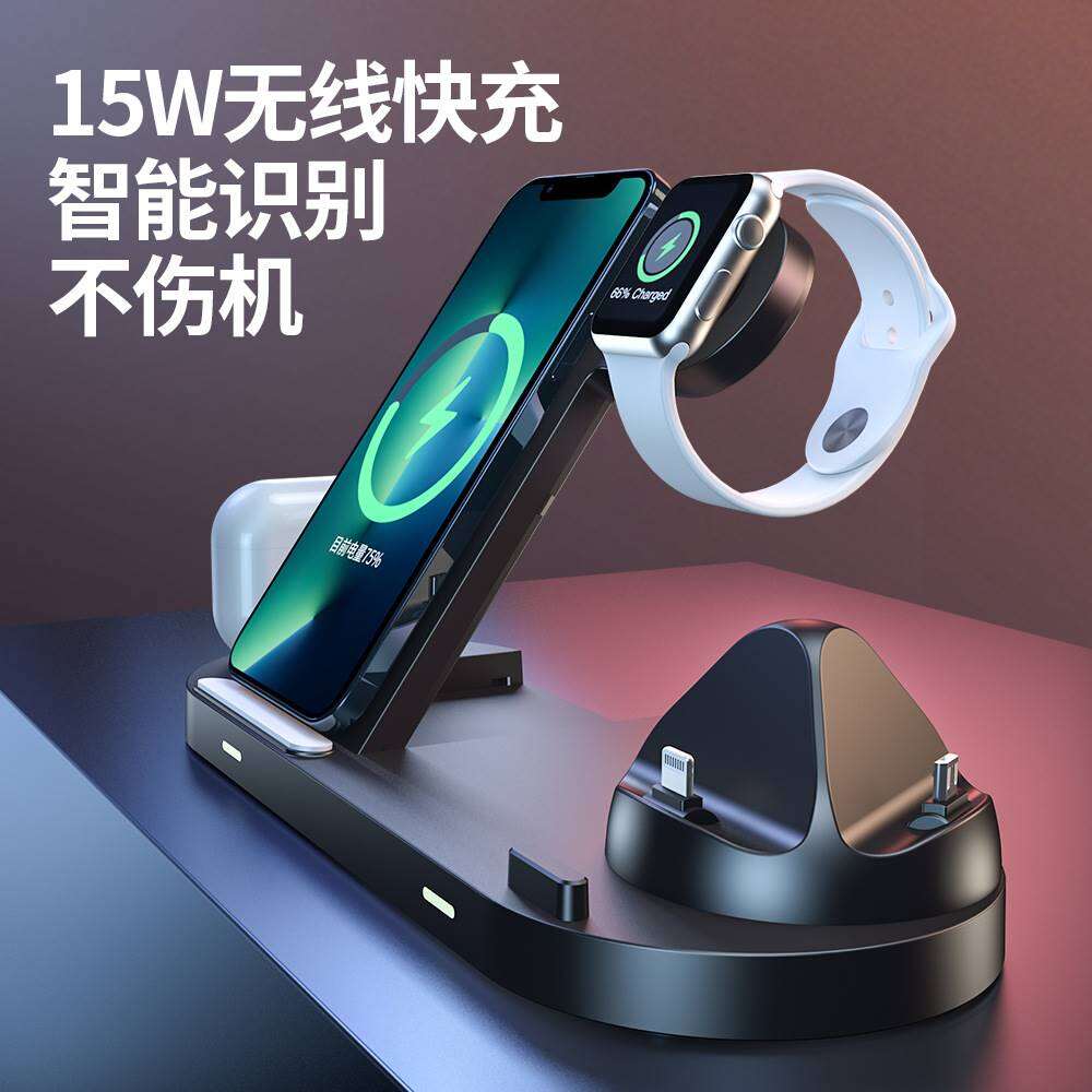 Amazon Hot 15W Six-in-One Wireless Charger Suitable for Apple and Android Mobile Phone Watch Headset