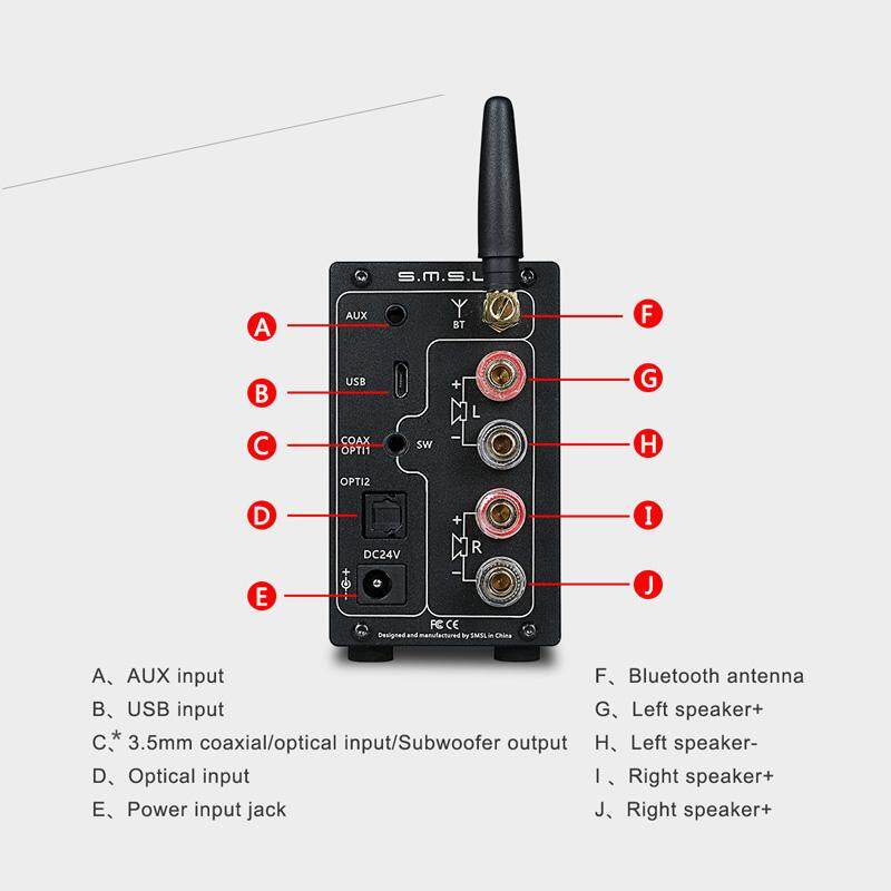 NEW SMSL AD18 80W*2 CSR A64215 DSP HIFI Bluetooth Pure Digital Audio Amplifier Optical/Coaxial USB DAC Decoder With Remote Control Full Digital Power Amplifier 2.1 for Speaker