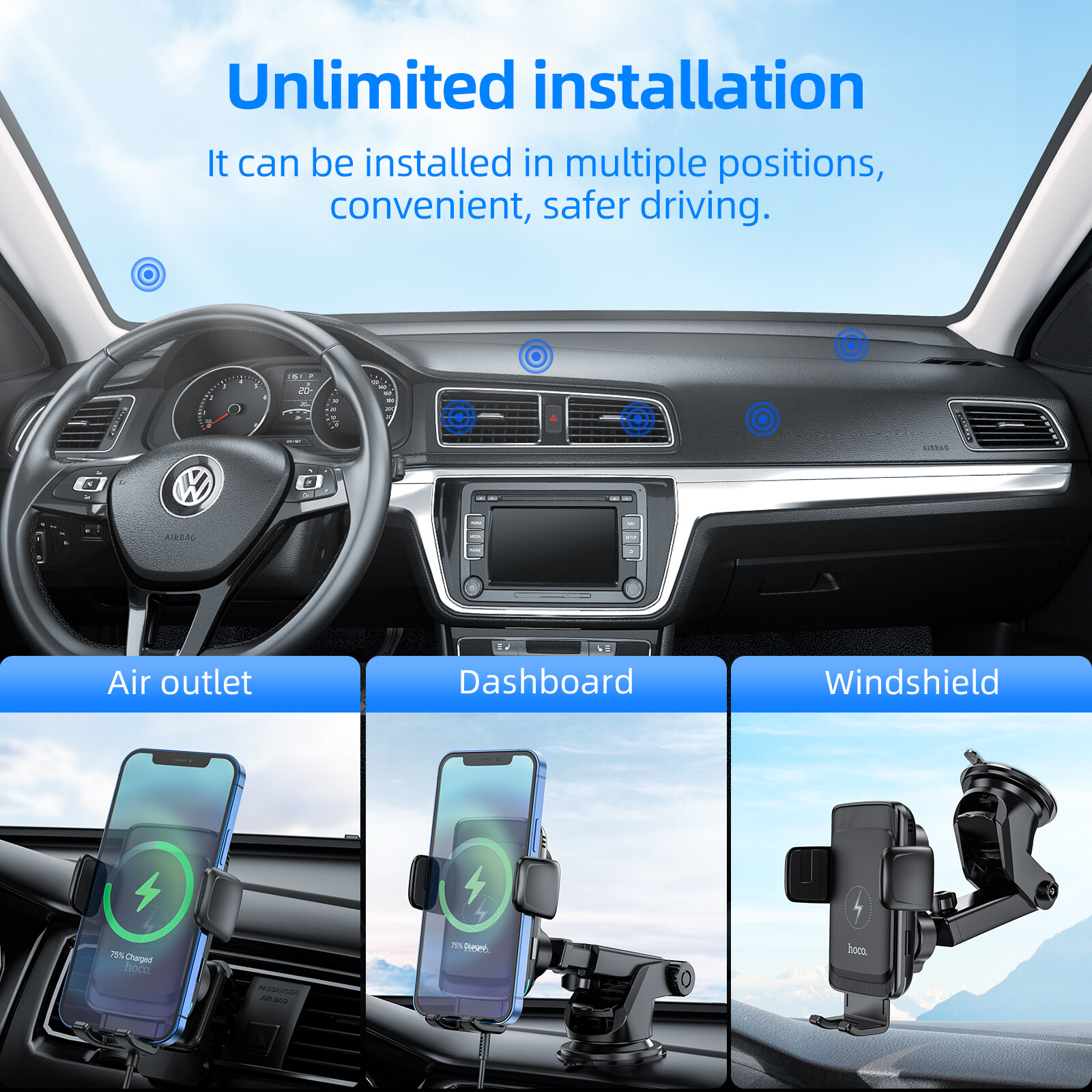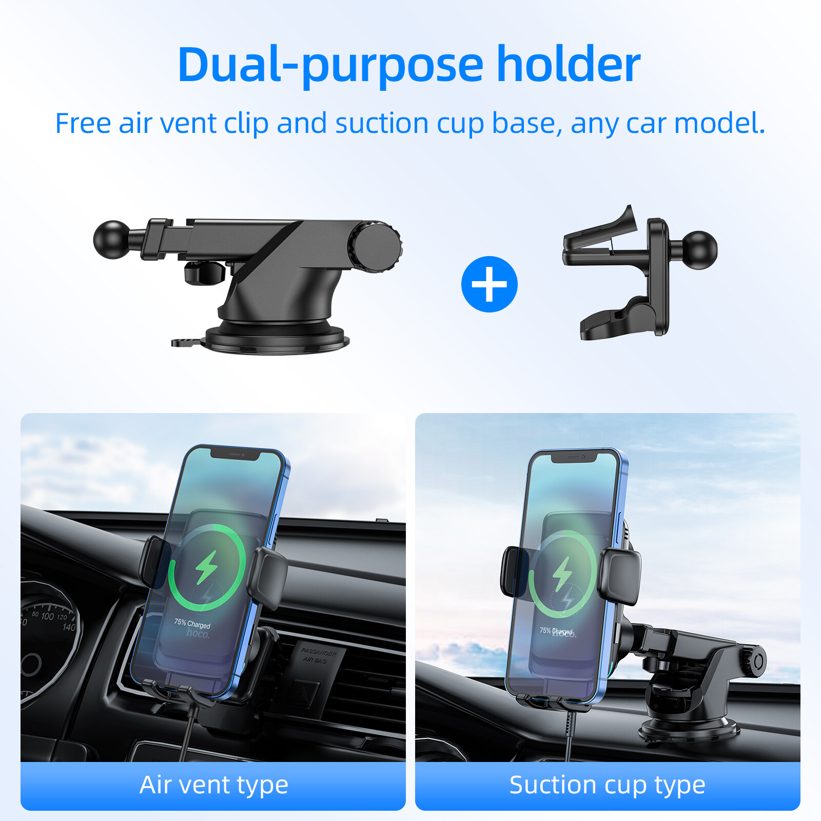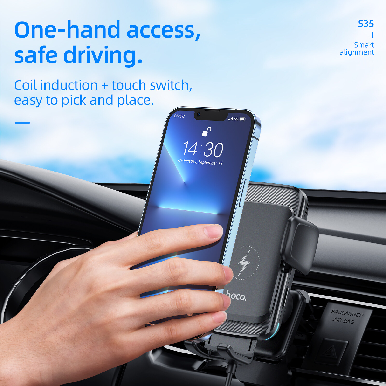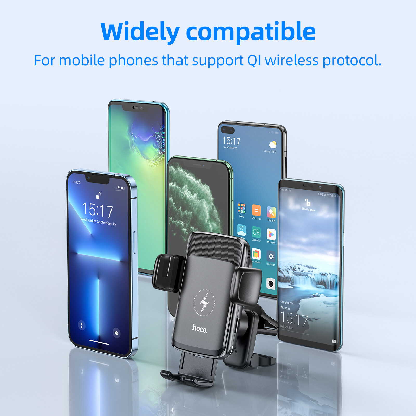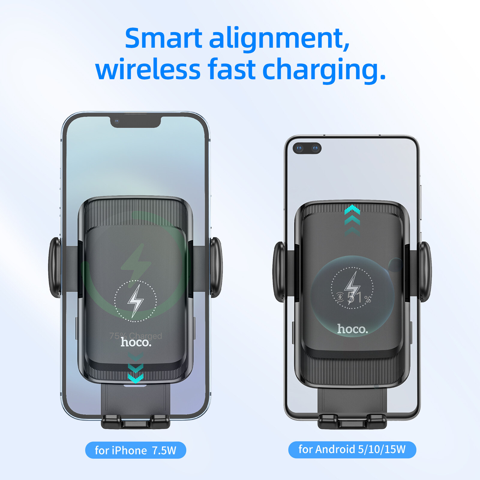 HOCO S35 100% Original Authentic15W Multifunctional mobile phone car mount Smart Alignment Wireless Charging Car Phone Holder For car air outlet /windshield phone Wireless Charger For All Smartphones