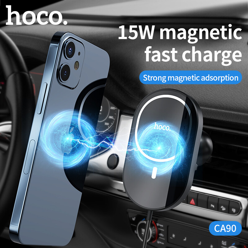 HOCO CA90 100% Original 15W Magnetic Wireless Car Charger Holder For 12 13 14 Pro Max Qi Fast Charging Air Vent Car Phone Holder For Samsung Android Smartphone Universal