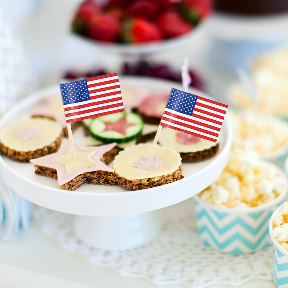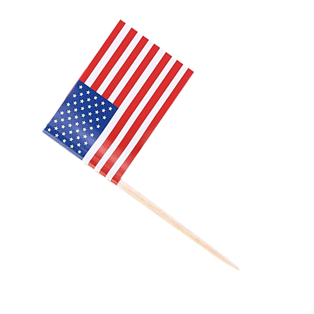 Wooden Food Insert Toothpicks Disposable Paper National Flag Sandwich Toothpicks Celebration Props 100pcs for Birthday Bar Party