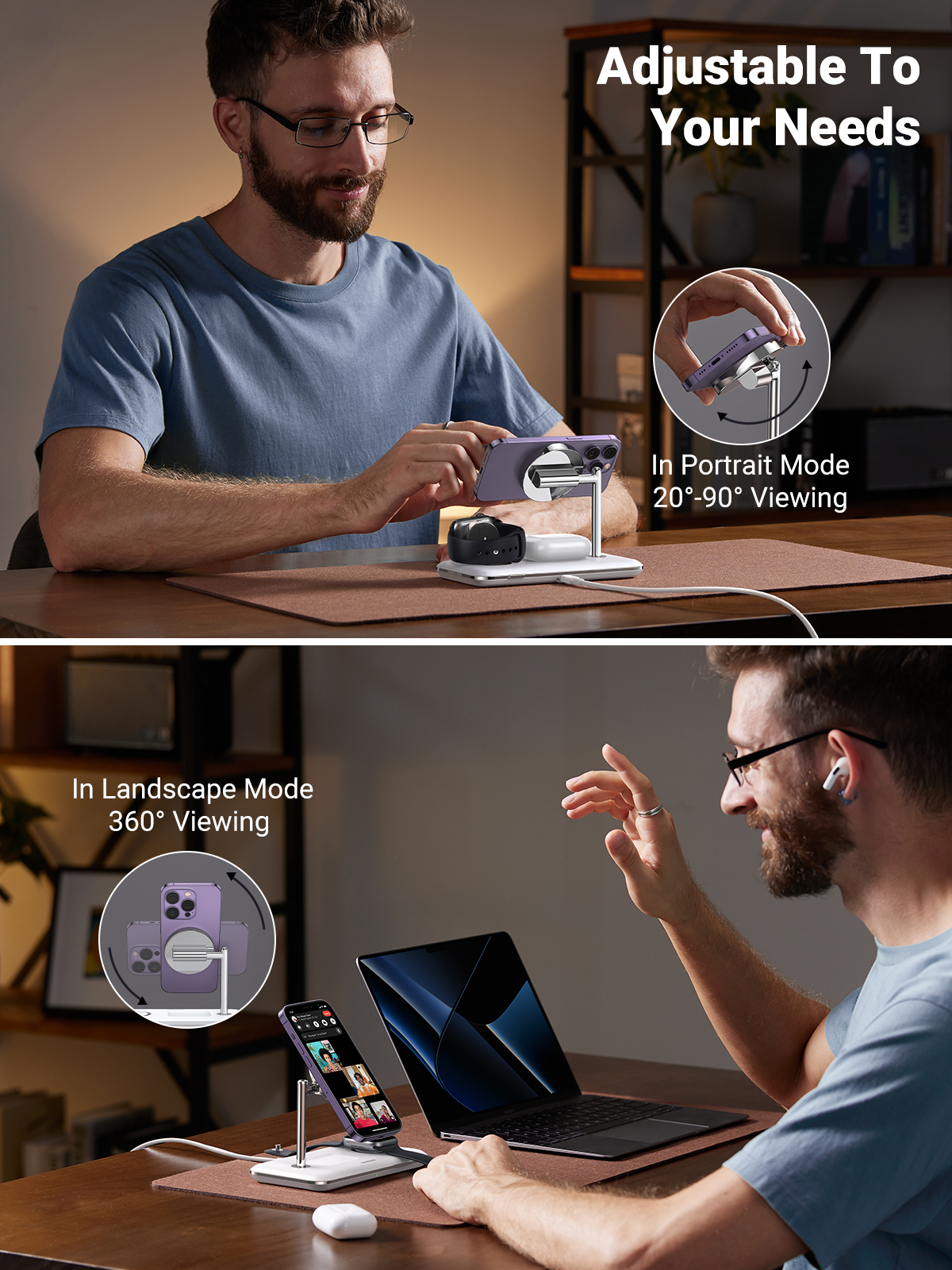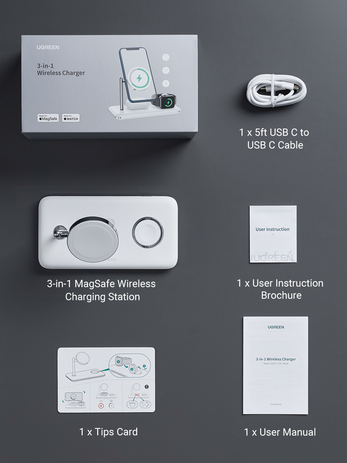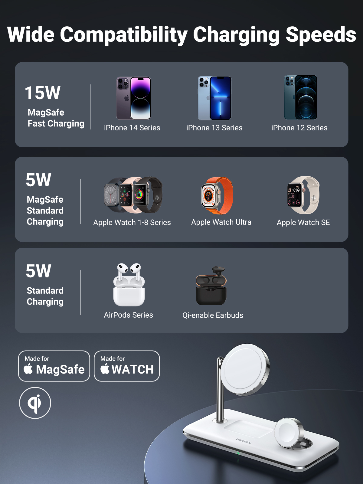 UGREEN 3-IN-1 25W MFI Wireless Charger Magsafe Charger for iPhone 14 Pro Max 14 Plus iPhone 13 Pro Max AirPods Pro/Max Apple Watch Xiaomi Air 2S Galaxy Buds Phone Holder