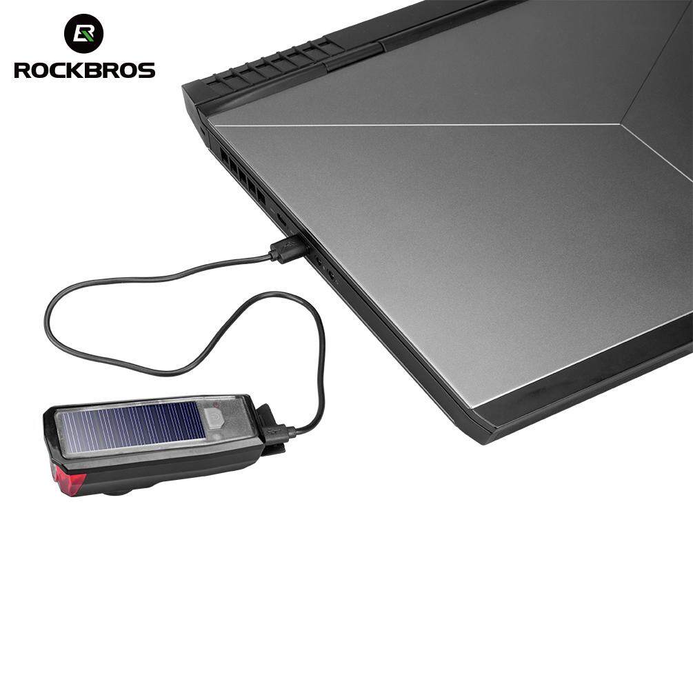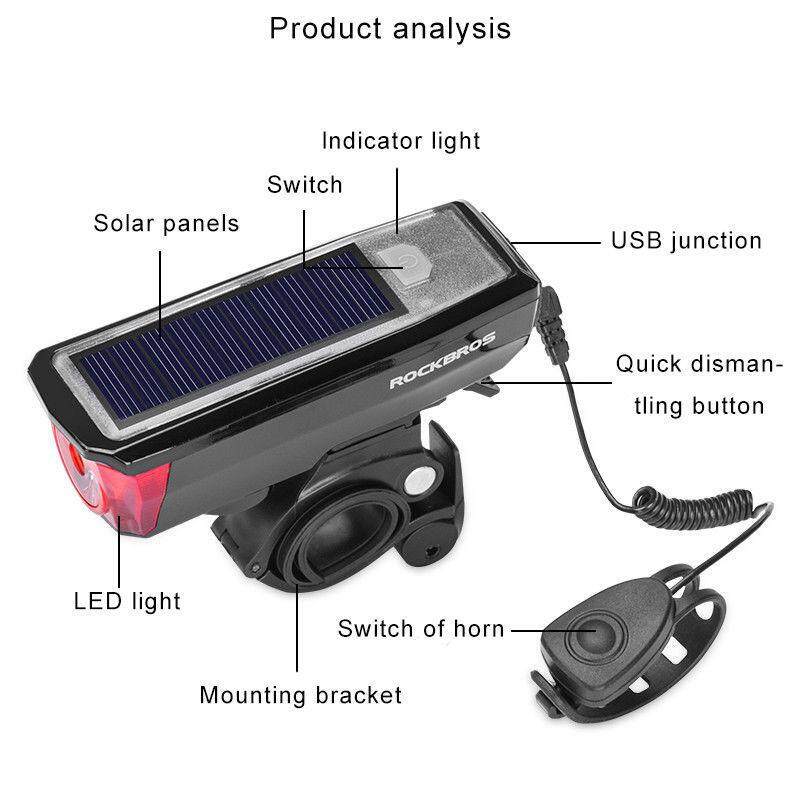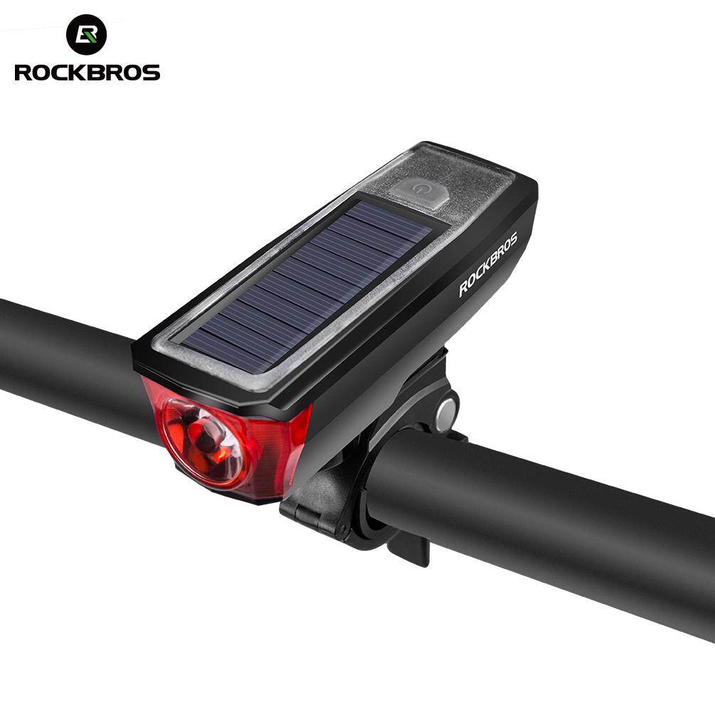 Rockbros Bicycle Light Solar Panel USB Rechargeable Bike Front Lamp 4 Modes 350 Lumen Light 120dB Bell Waterproof Light