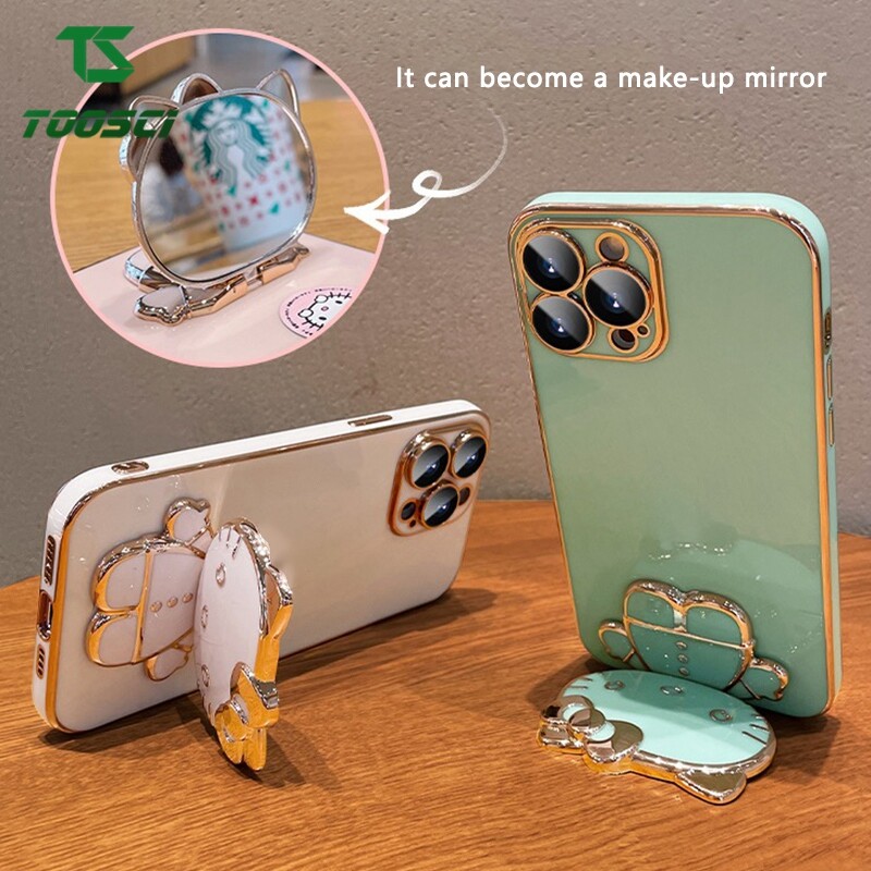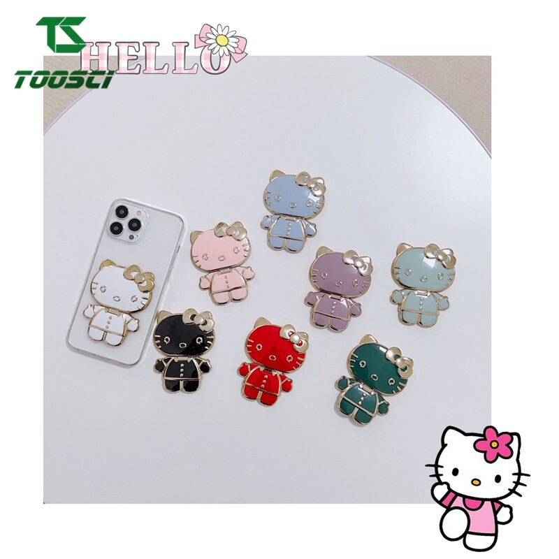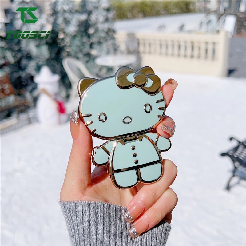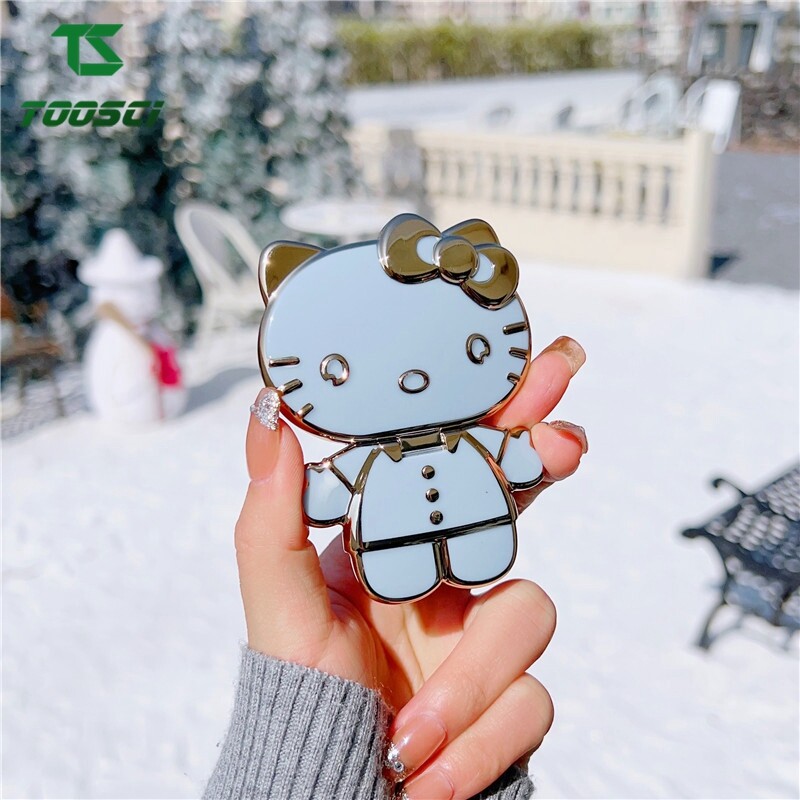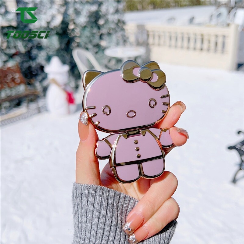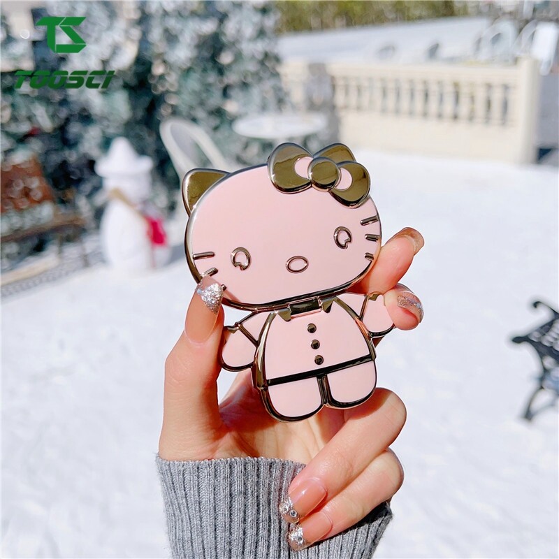 Luxury Fashion 3D Hello Kitty Swivel Mirror Universal Mobile Phone Pop Bracket Simple Cute Cartoon Grip Bracket Phone Expanding Stand Smartphone Phone Finger Holder For iPhone OPPO VIVO Xiaomi Redmi H