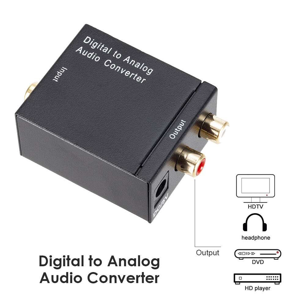 Digital to Analog Audio Converter Optical Fiber Toslink Coaxial Signal to Amplifier RCA R/L Decoder Adapter