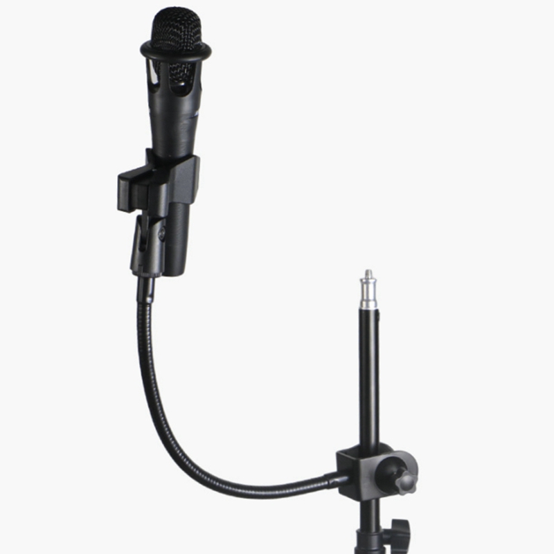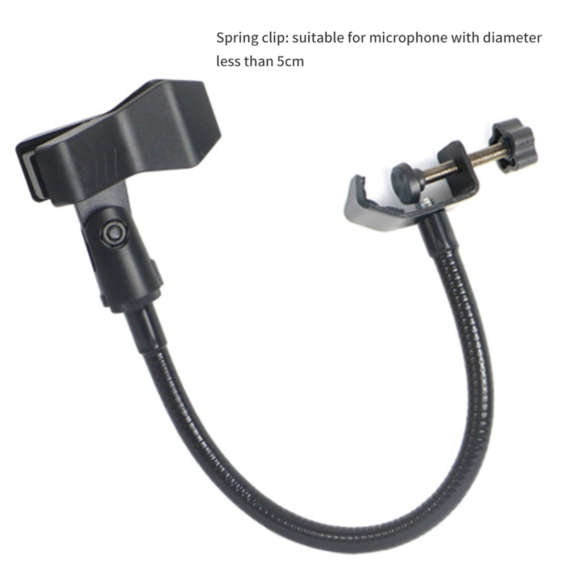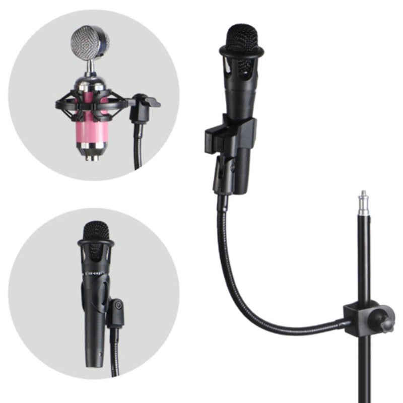 Flexible: Can be angled 360° to accommodate any position for the microphone. Strong: gooseneck ensures your microphone will stay firmly in place. Variable Fit: plastic microphone holder stretches to fit a large range of handheld microphones. Adjustable: Microphone holder can rotate on internal threading to ensure microphone is pointed in an perfect direction. Secure: Desk clamp securely holds mic stand to desk and ensures it will not move.