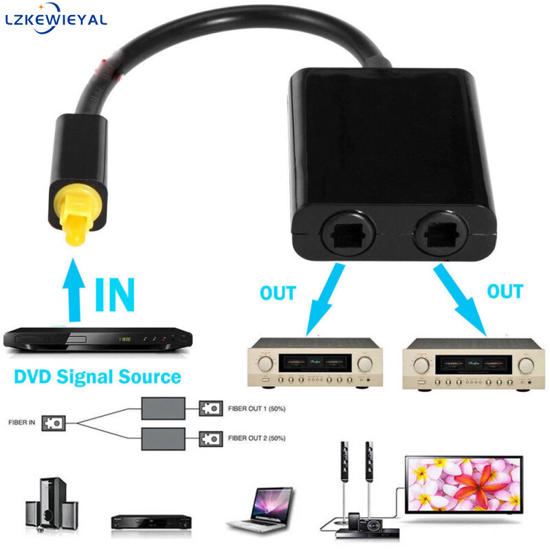 LK【Fast Delivery】Optical Digital Audio Cable Splitter Adapter 2 Way SPDIF Toslink 1 To 2 Out Hub