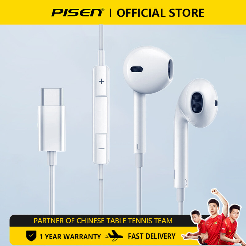 Pisen Wired Headphones In-Ear Type-C Wired Control Music Call Function Headphones for Samsung Huawei Xiaomi Android 3.5mm Half In-Ear Headphones