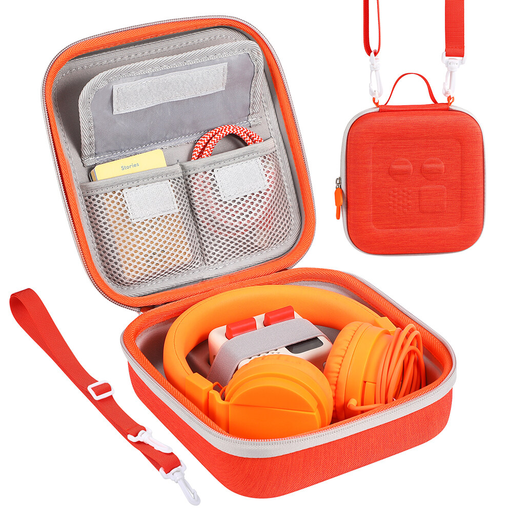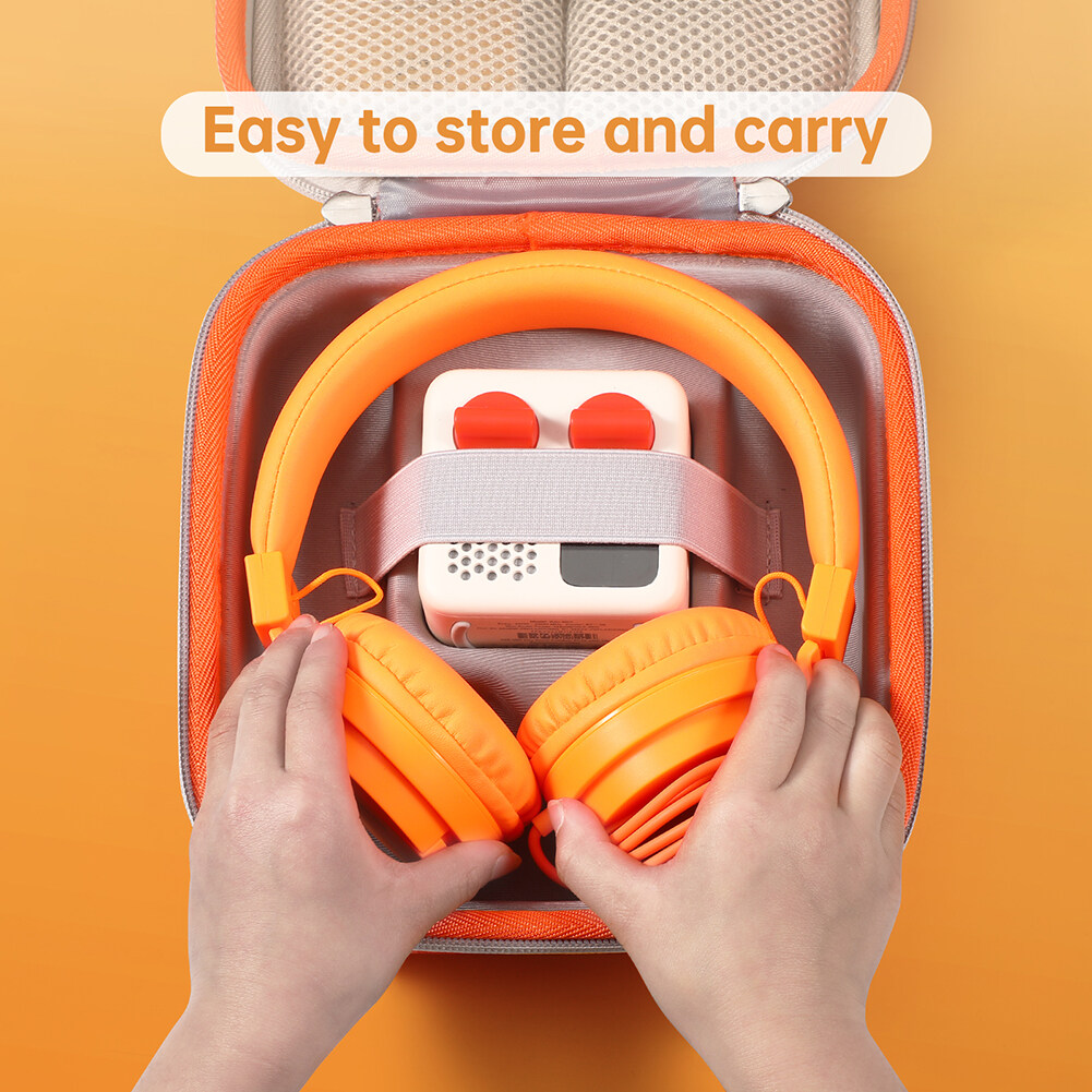 Feature: 1. Special Design: Gray and orange color contrast design, perfect for carrying and storing your children's speakers, suitable for Yoto Mini children's radio player card and accessories (audiobook card and USB charging cable), and can also put down headphones.