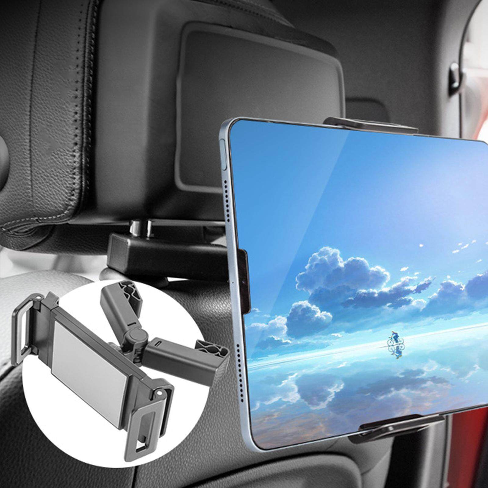 - Tablet Phone Holder: Car tablet phone telescopic bracket, triangular telescopic adjustable support arm, compatible with headrests of various models. The triangular telescopic rear bracket, the length of the fixed frame can be adjusted, and it can be used in all vehicles.