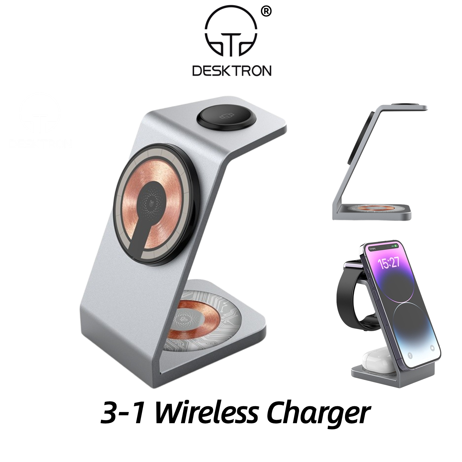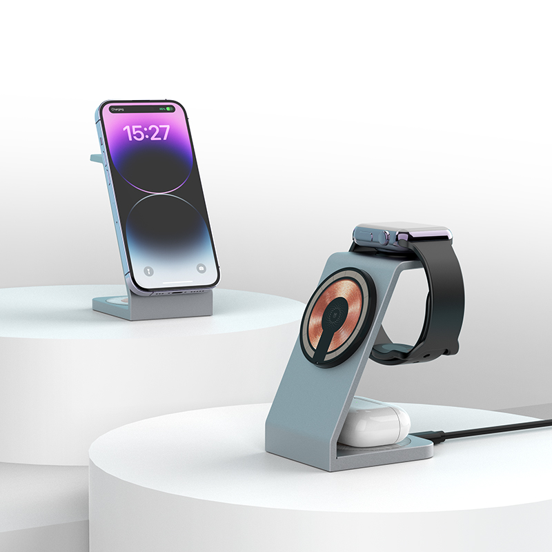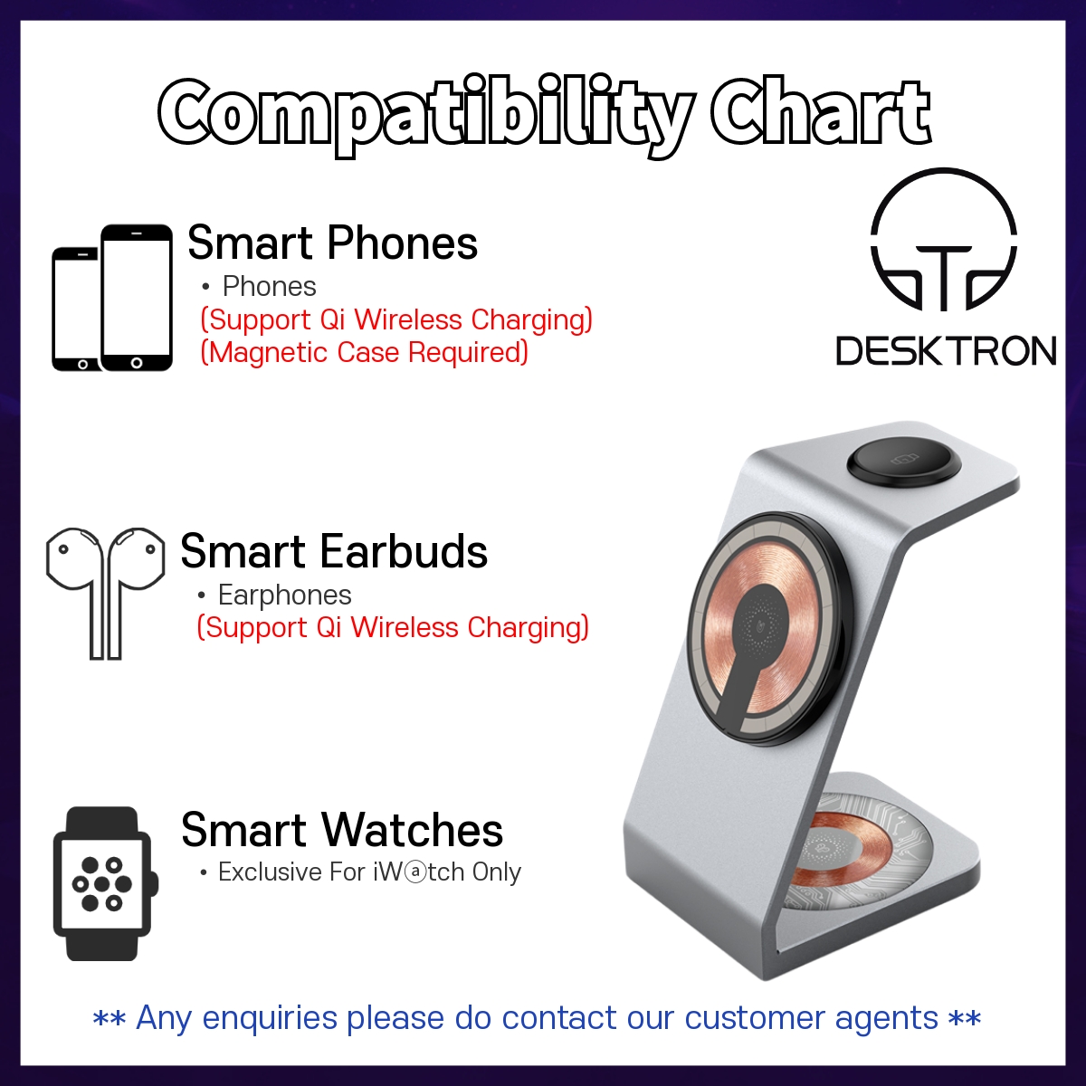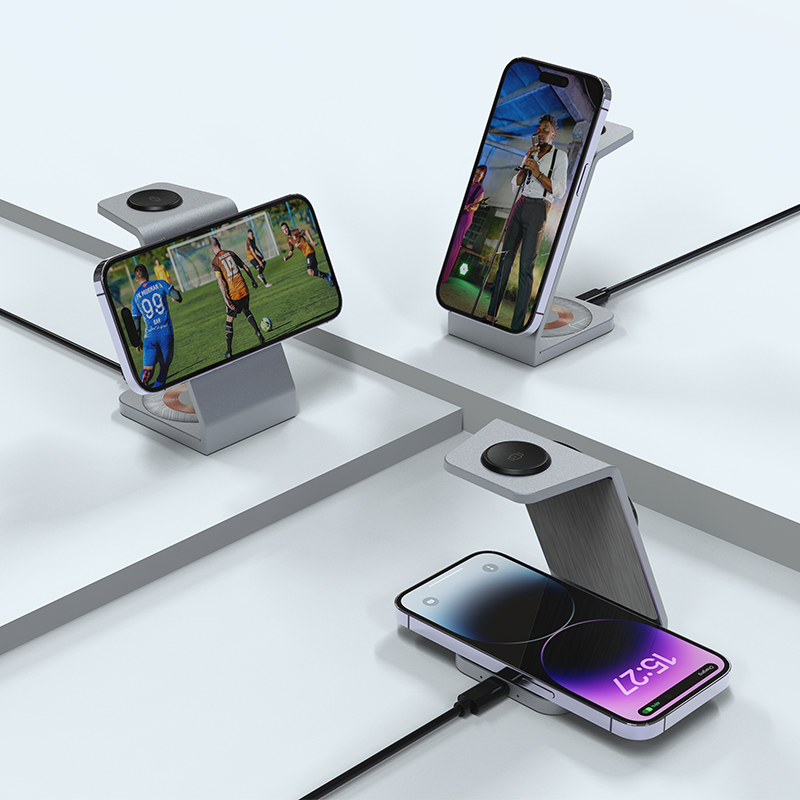 【3-in-1 Wireless Charging】 - 2023 Latest Design, features a magnetic aluminium wireless charger designed for Apple Users. To enjoy a 15W Charging experience please use a 20W QC Adaptor. (sold separately)
