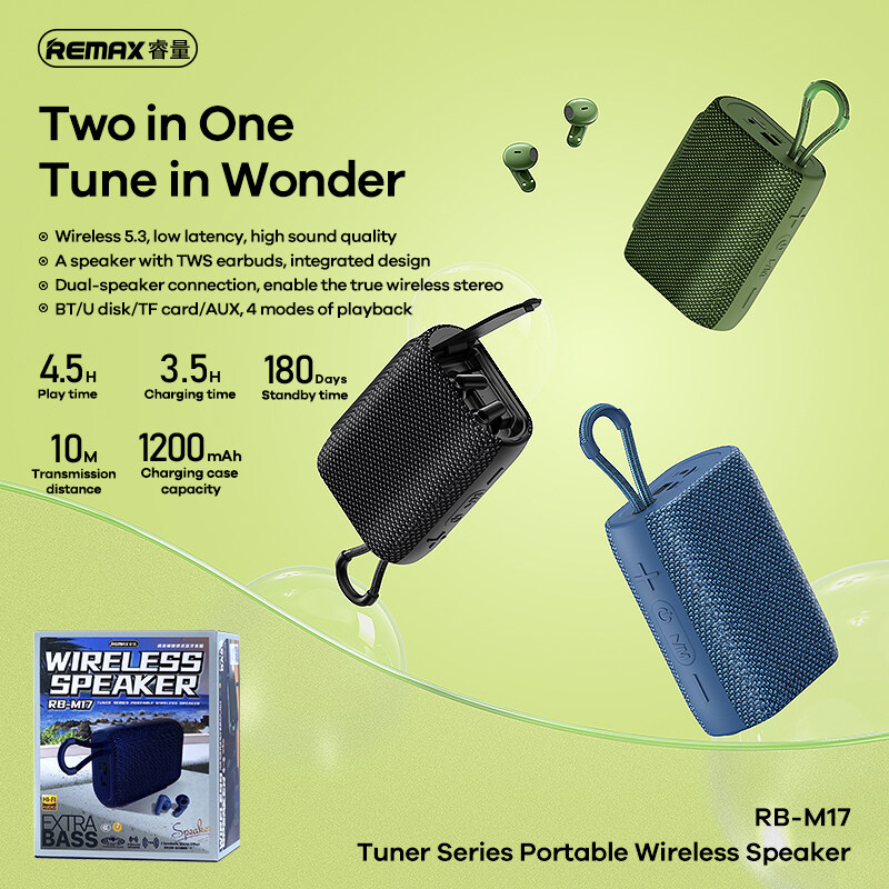 Remax RB-M17 Bluetooth Speaker BT5.3 Portable Speaker Wireless Bluetooth Speaker with TWS Earphones