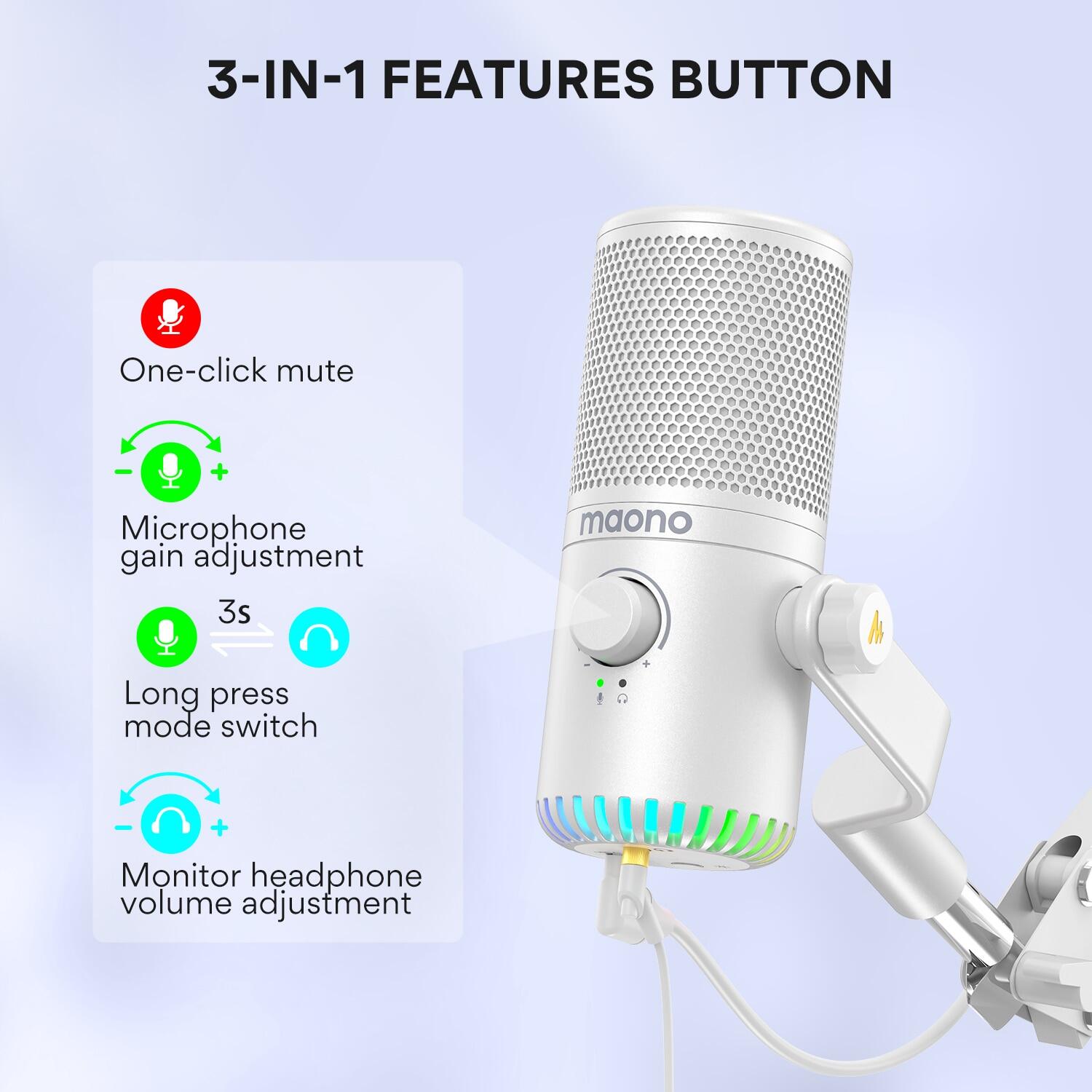Maono USB/Type-C Gaming Microphone For Phone PC With Breath Light Zero Latency Monitoring Mic For Podcasting Streaming DM30