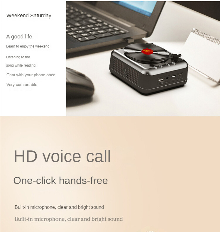 Kebidumei Bluetooth Speaker H3 Retro Vinyl Record Player Shape Mini BT Wireless Sound Box Support TWS BT Dual Device Serial