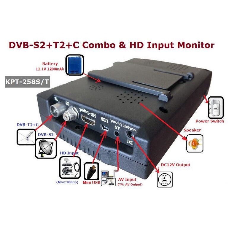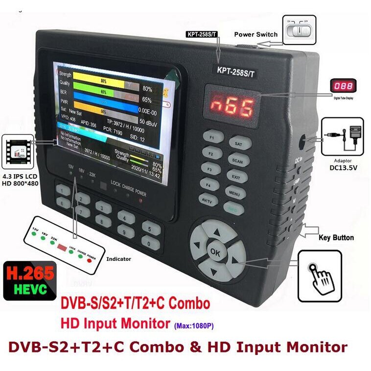 Refale KPT-258S/T TFT IPS Portable Satellite Finder DVB-S2/T2/C Combo HD Monitor With AV Input AHD 4.3 inch Screen PK ST