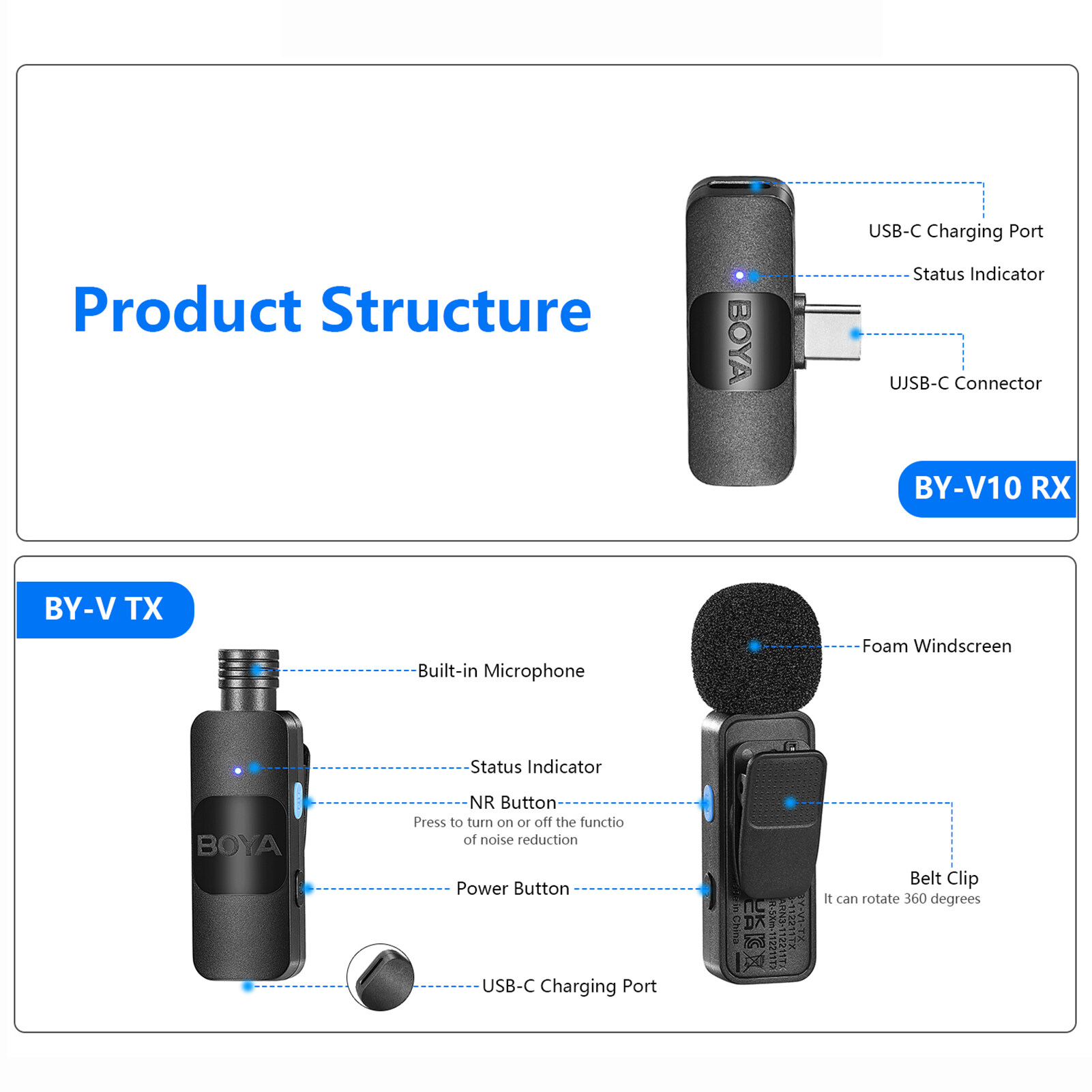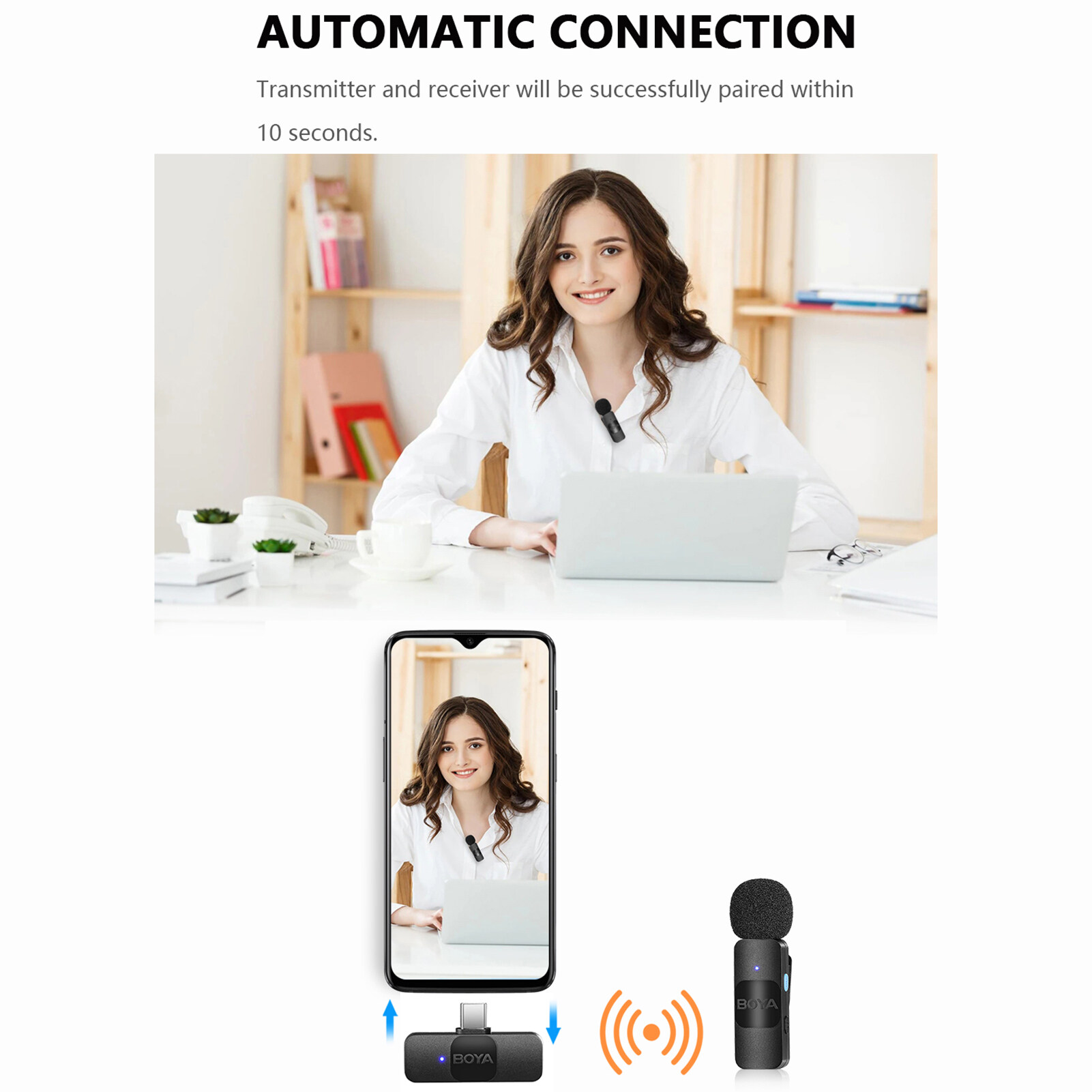 BOYA BY-V10 One-Trigger-One 2.4G Wireless Microphone System Clip-on Phone Microphone Omnidirectional Mini Lapel Mic Auto Pairing Smart Noise Reduction 50M Transmission Range Replacement for Huawei Sam