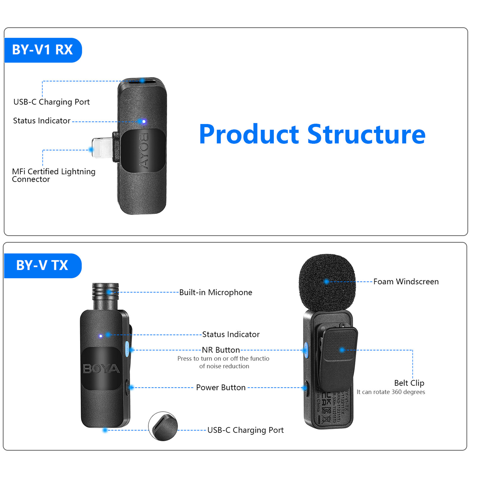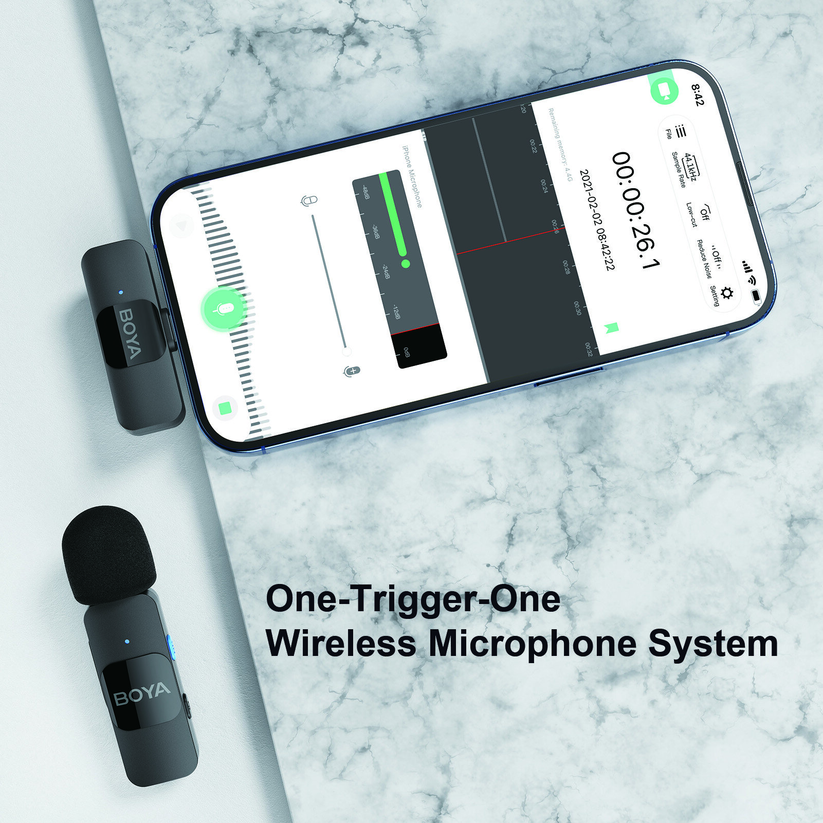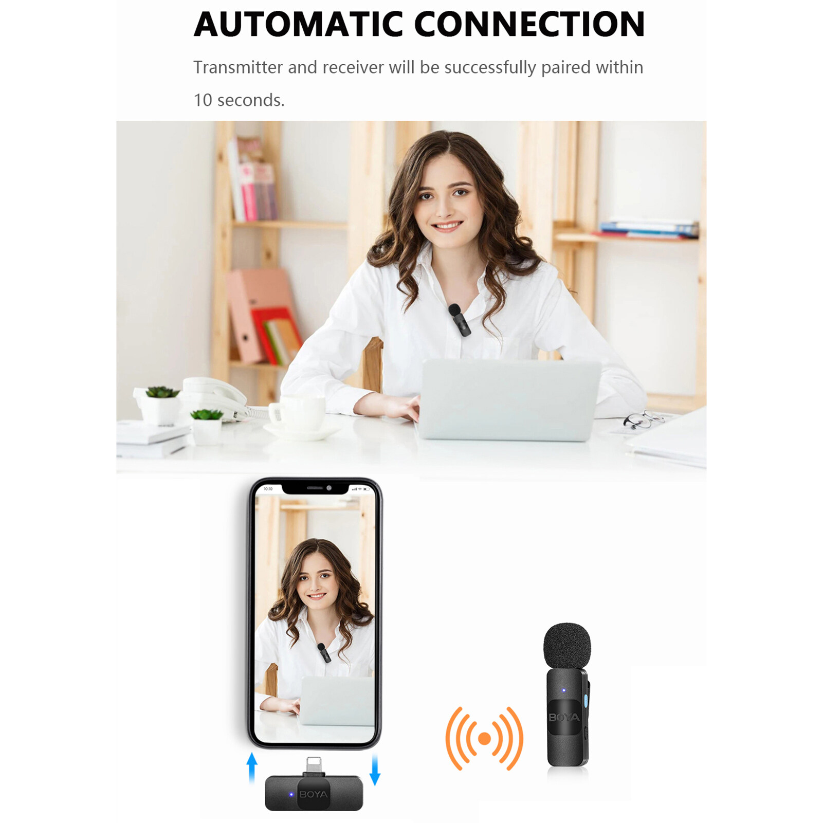 BOYA BY-V1 One-Trigger-One 2.4G Wireless Microphone System Clip-on Phone Microphone Omnidirectional Mini Lapel Mic Auto Pairing Smart Noise Reduction 50M Transmission Range Replacement for iPhone 14/1