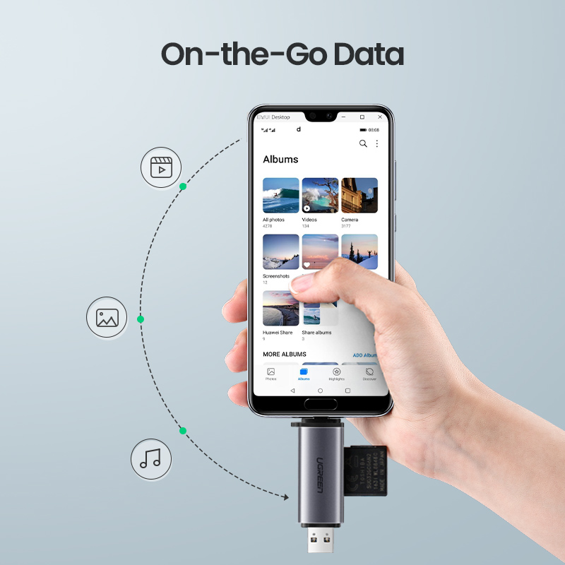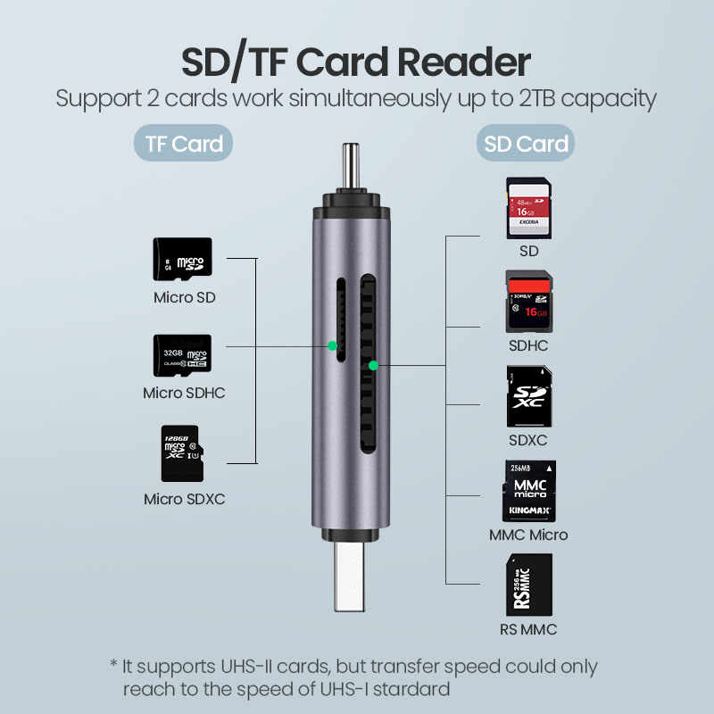 UGREEN 2 in 1 Card Reader USB 3.0 for SASMUNG S20+/S10+/S9/Note 10/Huawei P40/Dell/Lenovo/ThinkPad USB 3.0 SD TF OTG Type C Smart Memory Card Adapter for Laptop USB 3.0 Cardreader SD Card Reader Read