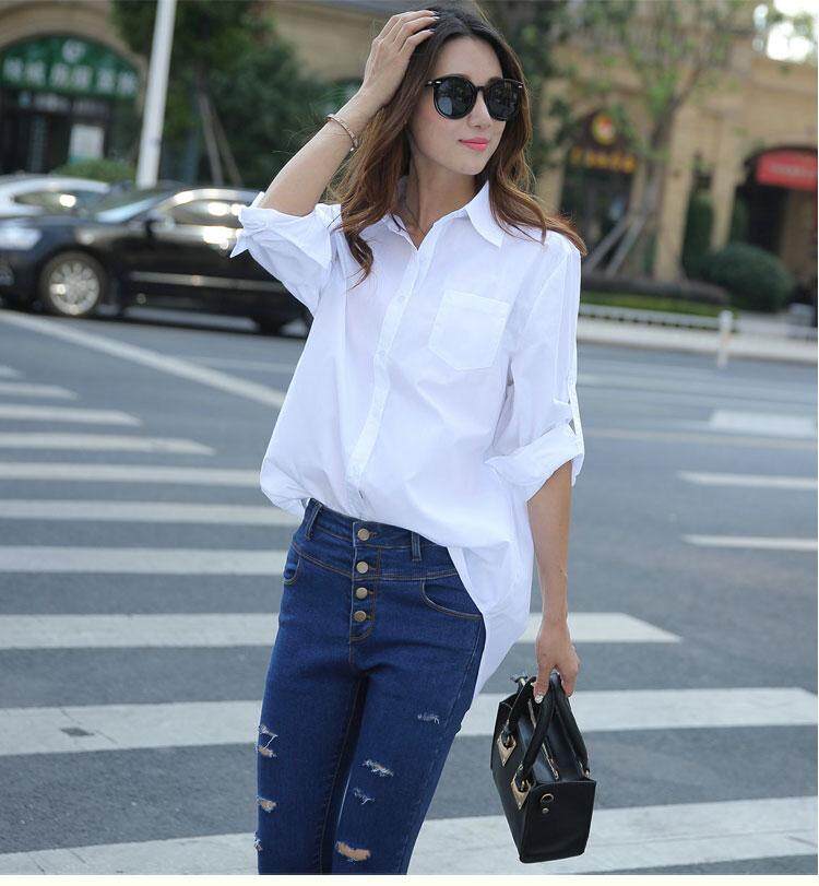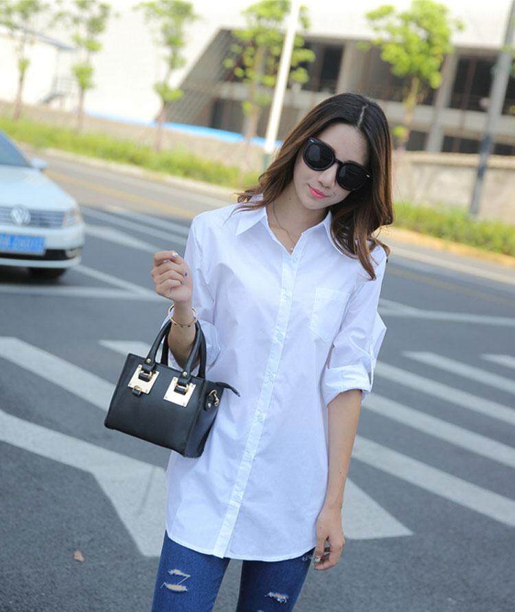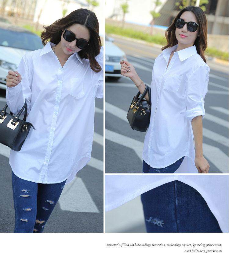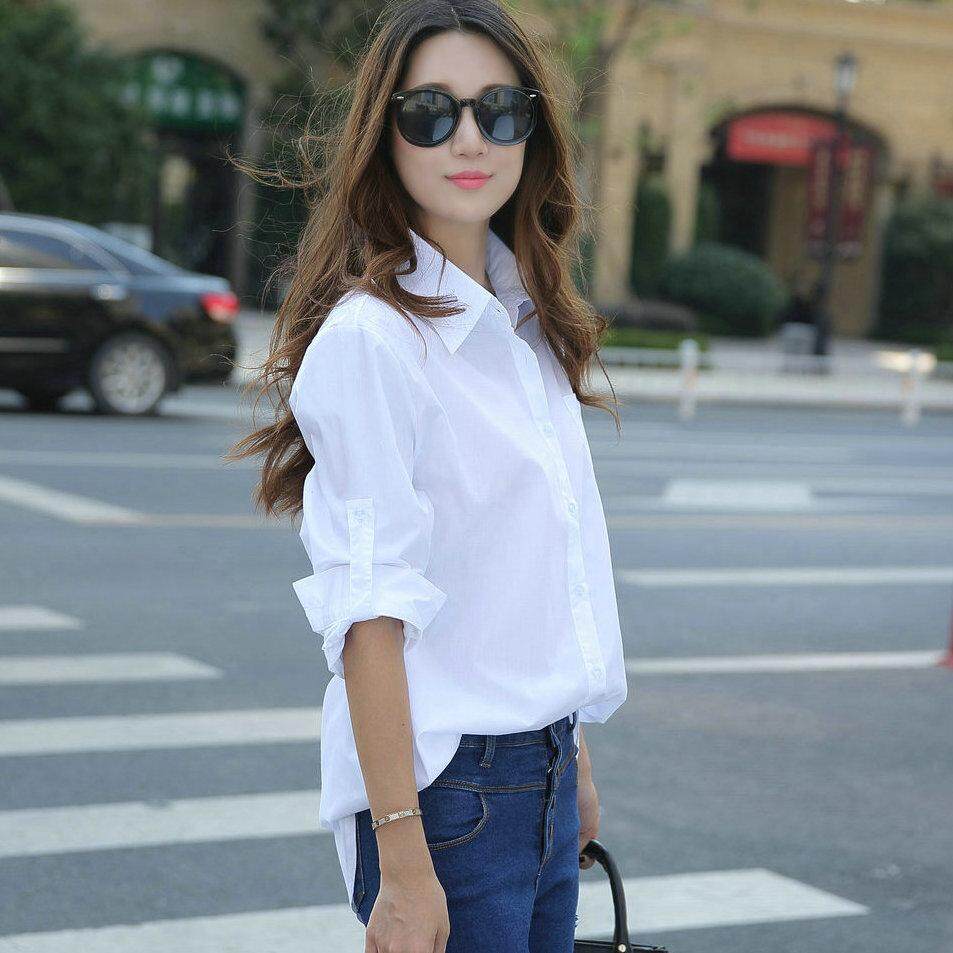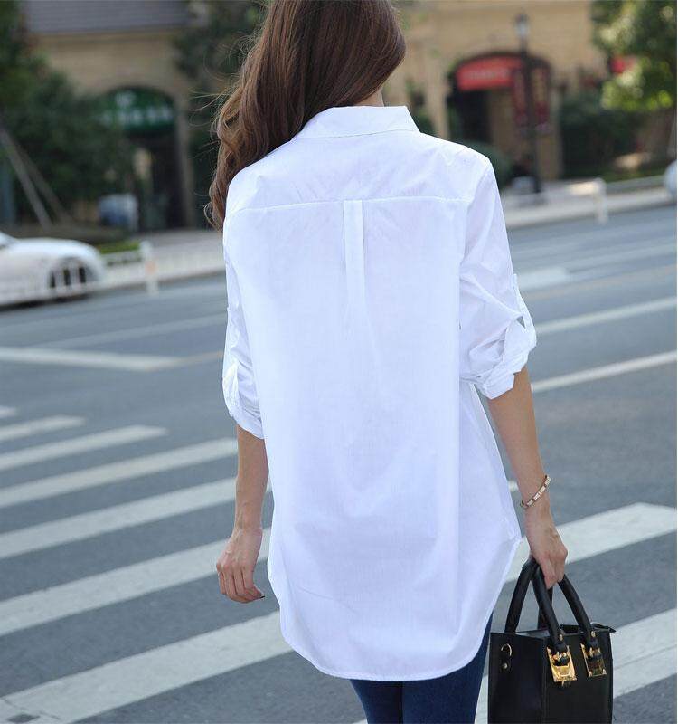 Autumn Spring Women Long White Shirts All-match Good Quality Long Sleeve Lady Casual Cotton Blouse Tops