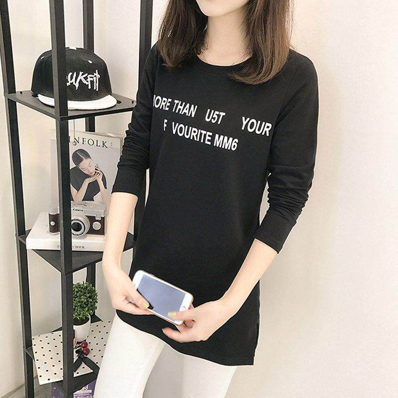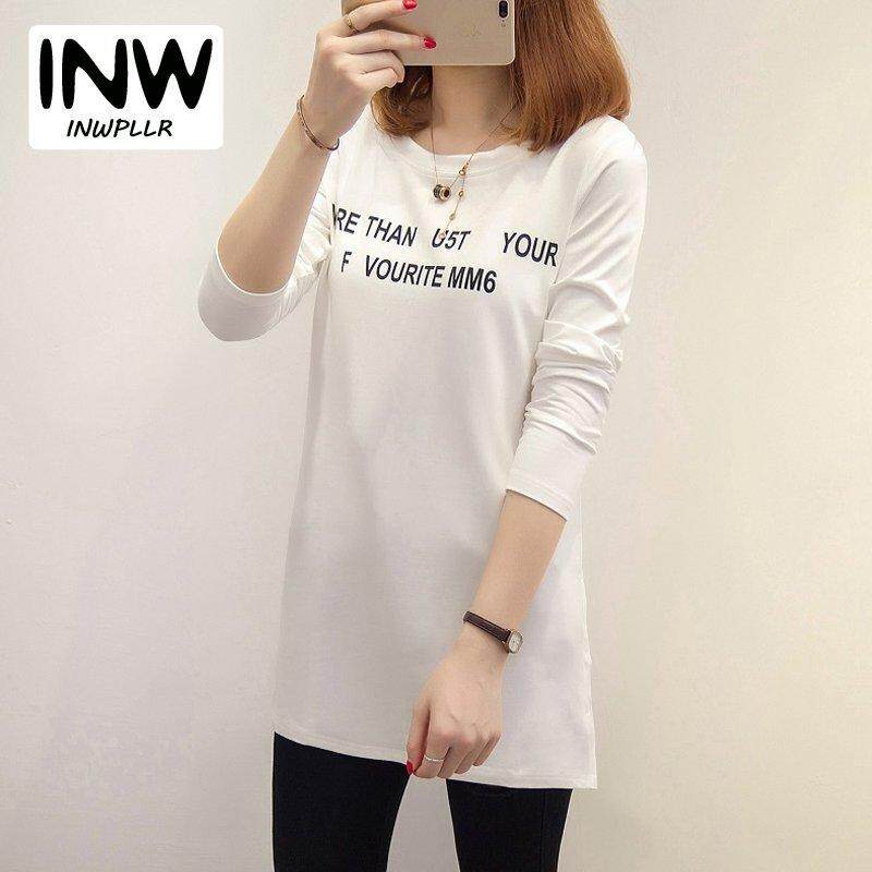 INWPLLR Fashion Women T-shirts Letter Print T-shirt Women O-neck Long Sleeve Tee Shirt Ladies Casual Long Tshirts Women Tops