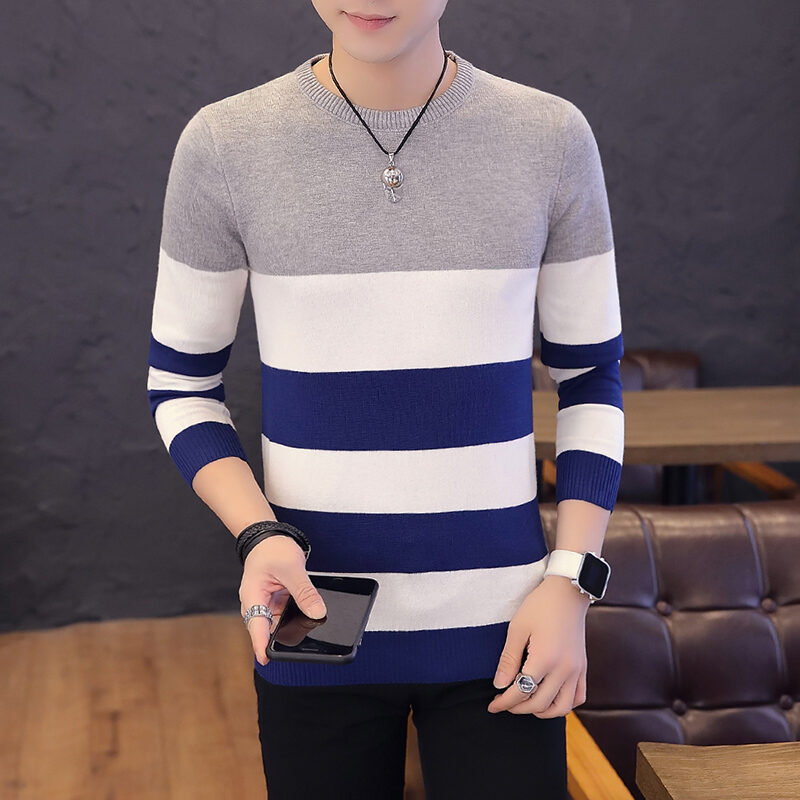 Men's Sweater 2018 Autumn Winter Men's Thin Round Neck Sweater Trendy Korean Style Slim Fit Sweater Cloth