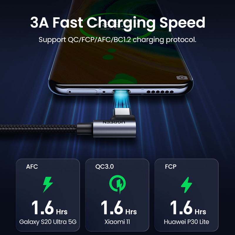 UGREEN USB C Cable Right Angle 90 Degree USB A to Type C Fast Charger Compatible with Samsung Galaxy S22 Ultra S21 S20 Note 20 Huawei Xiaomi Oppo Vivo Z Flip Z Fold LG V50 V60 iPad Mini 6 Air 4 Ninten