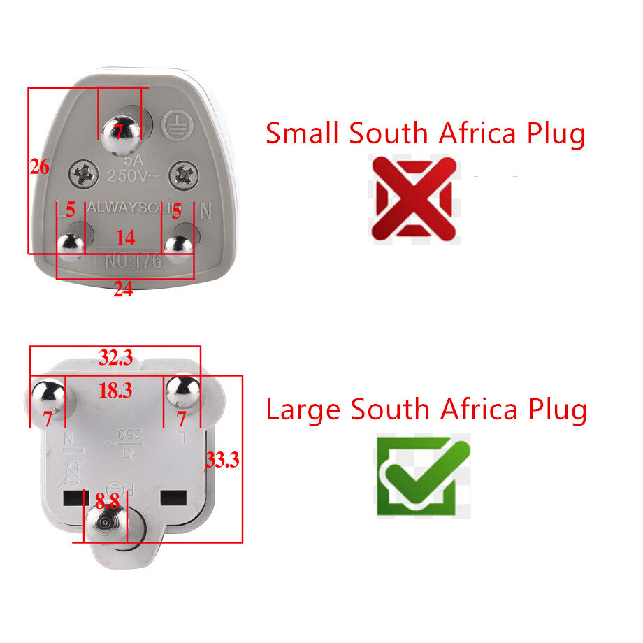 Large South Africa Plug (Type M), 15A 250V AC Power Socket AU US UK to South Africa/Swaziland/Lesotho Converter For Home Use Travel Charging