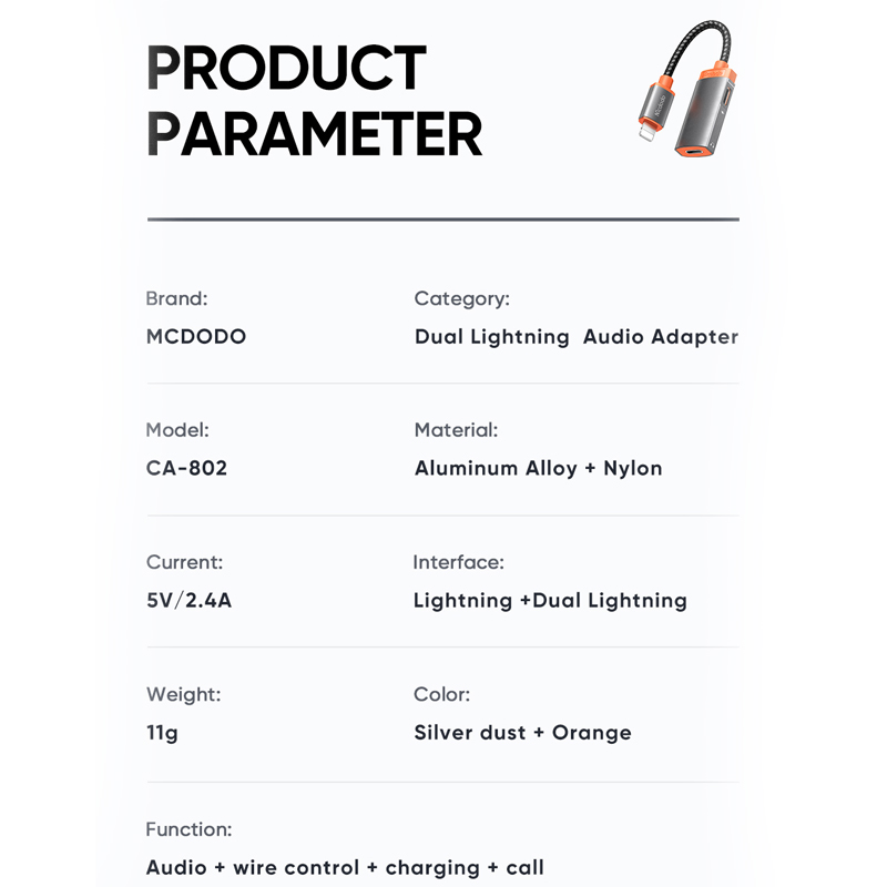 Mcdodo Cable Adapter for Lightning To For Lightning For iPhone 13 12 11 X 8 7 Plus Earphone Cable Audio Cable Charging Calling Data music