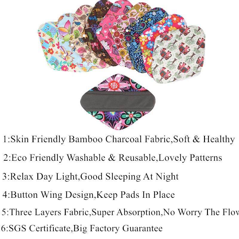 [simfamily]Reusable 6+1set Women Sanity Napkins Panty Liners Set Bamboo Charcoal Daily Use Sanitary Pads Mama Menstrual Pads