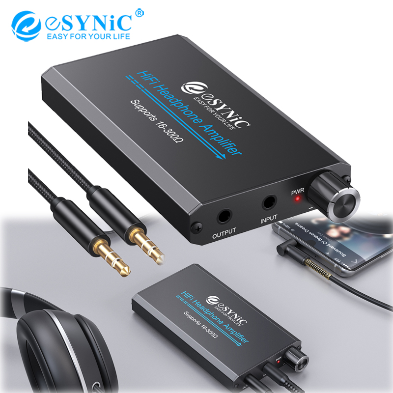 eSYNIC New Black Portable Audio HIFI Headphone Amplifier Mini High Fidelity Earphone AMP With Audio USB Cables