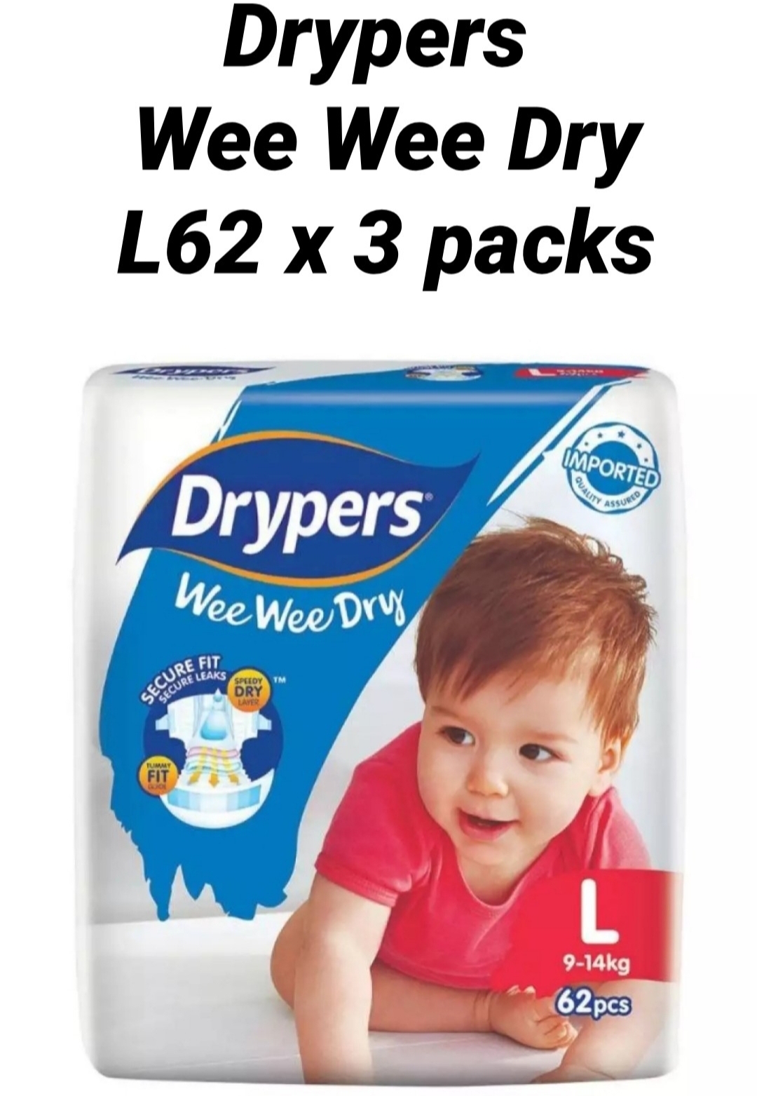 Drypers Wee Wee Dry L62 x 3 packs