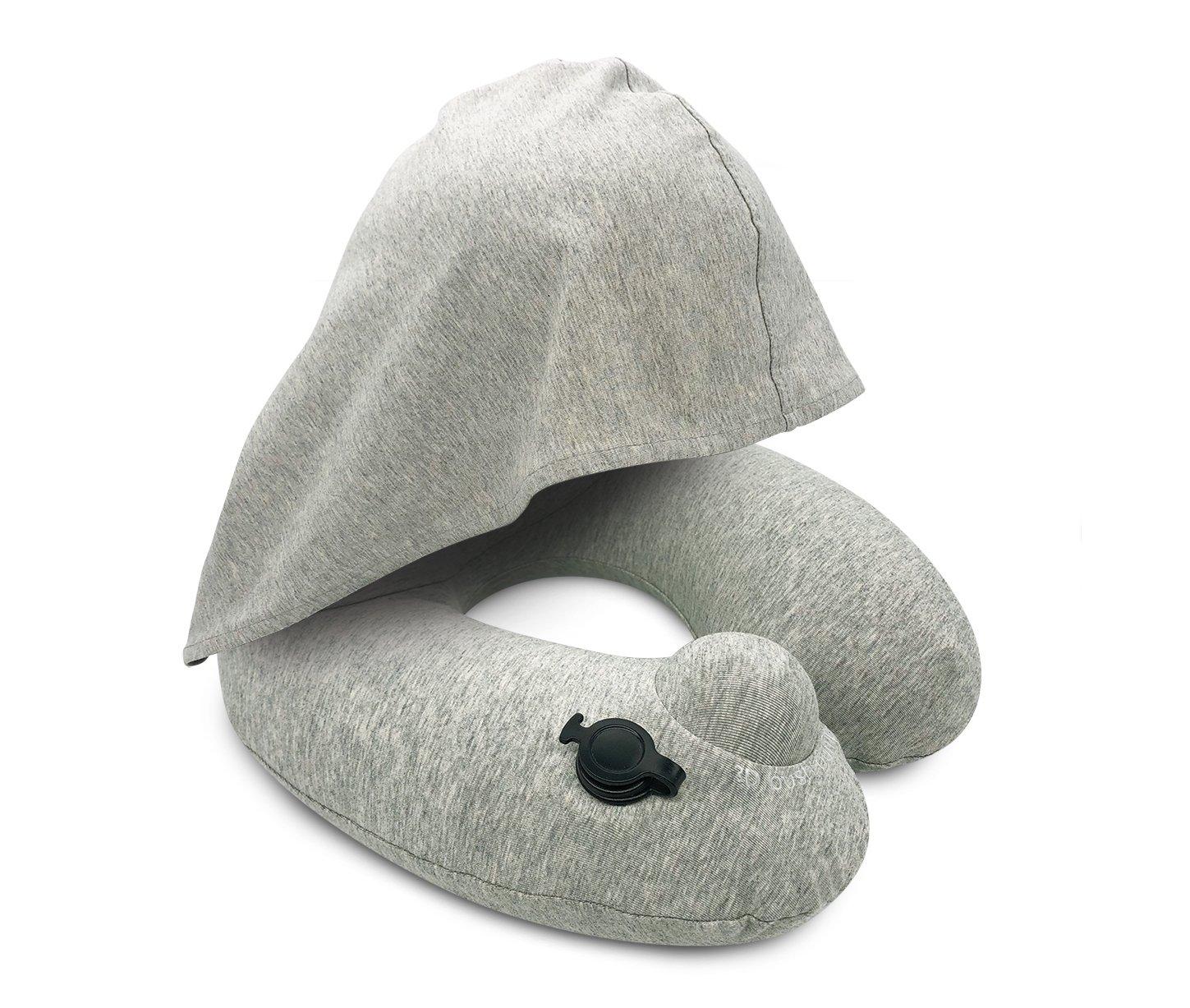 Travelmall 3D Inflatable Neck Pillow with Patented Pump and Hood (Grey)