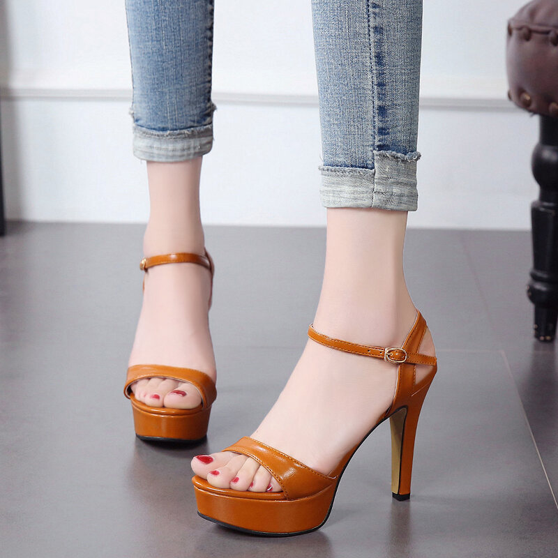 2019 New Korean style fresh stiletto heel sandals open toe buckle high heels women's summer platform all-match women's shoes