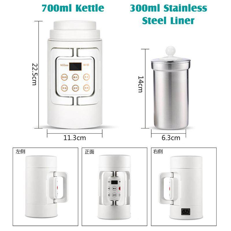 Migoo Portable Travel Multi-function Electric Kettle Stainless Steel Bottle 0.7L Water Pot Insulation Automati at Home Office Outdoor