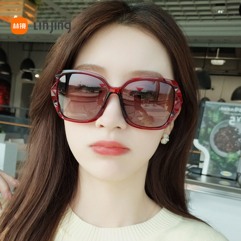 2022 New Large Frame Slimming Sunglasses Women's UV-Proof Driving Polarized Sunglasses Women's Summer Diamond Glasses Fashion