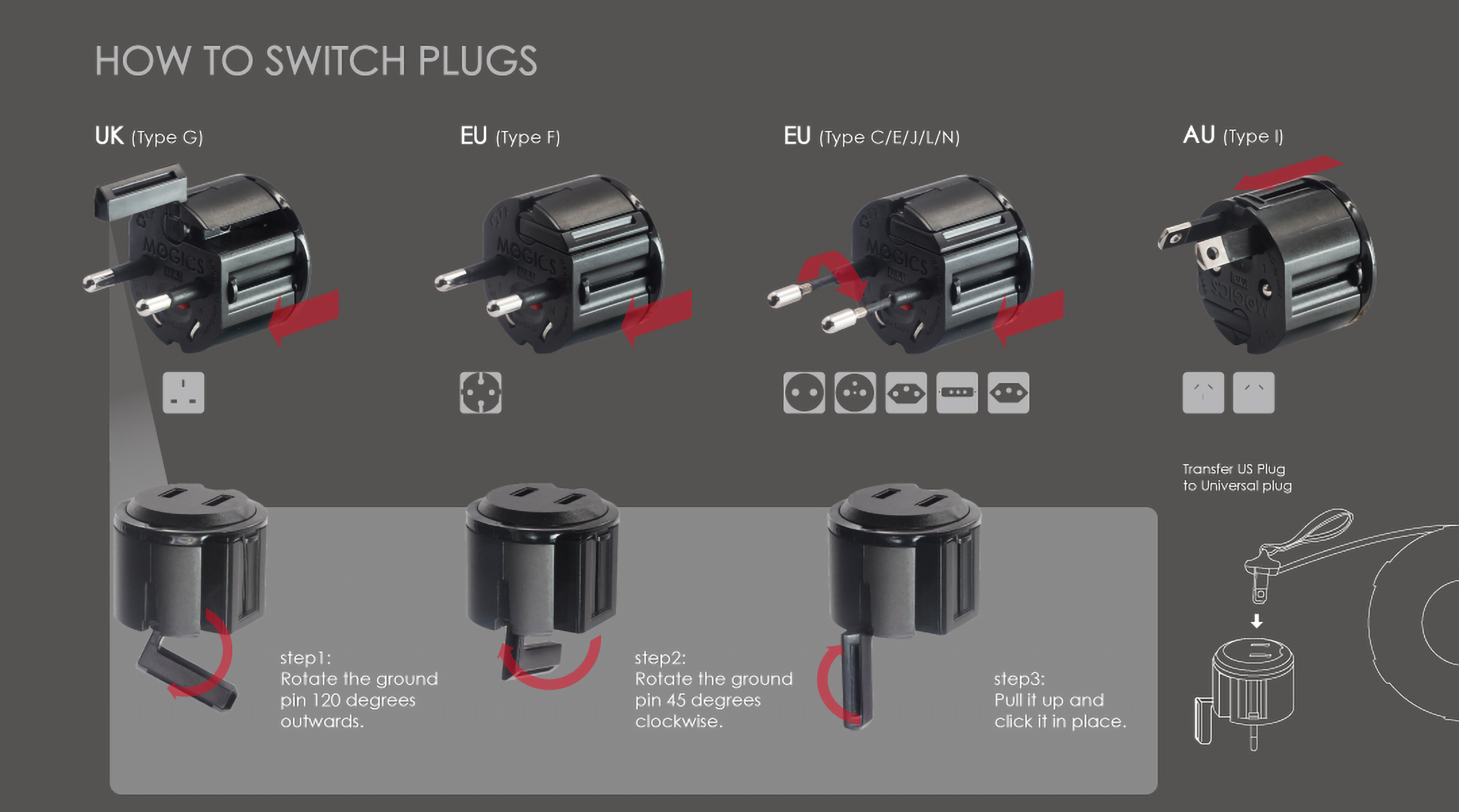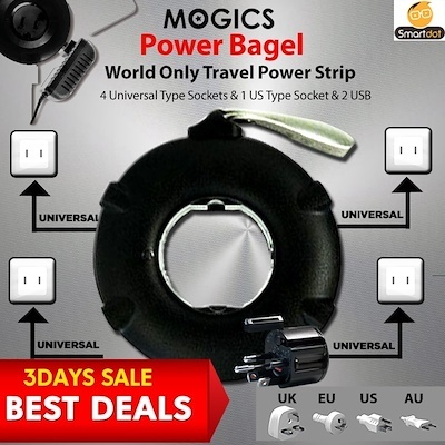 MOGICS SUPER BAGEL Gen3 World Smallest Pocket Size Universal Power Bagel Adaptor Fast Charge PD Type C Plugs Travel Office Home