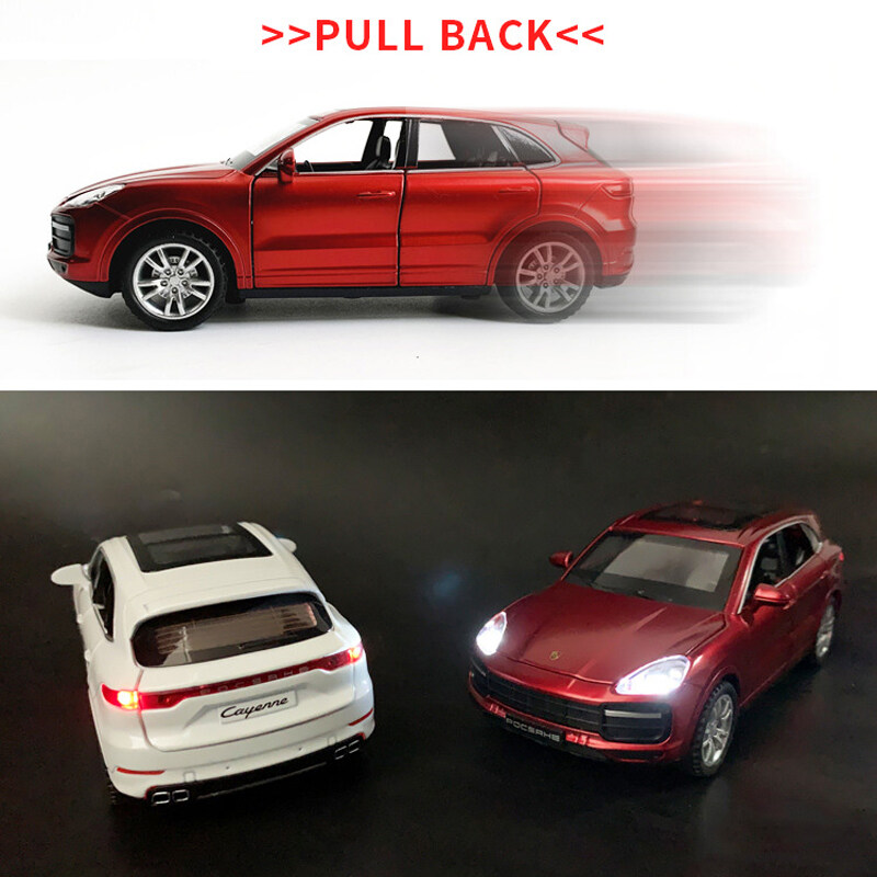 LEO 1:32 Porsche Cayenne Sound & light function the door can be opened diecast Alloy car model toys for boys toys for kids car for kids educational toys cheap prices